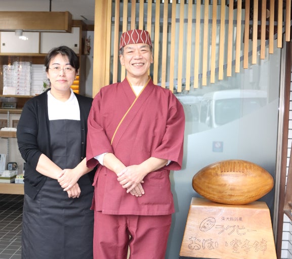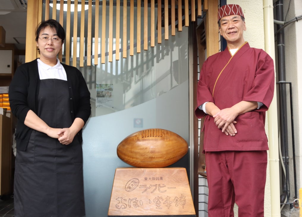 元々は『東大阪を代表する銘菓を!』というコンセプトの元、ラグビーの聖地、東大阪の市と協力して、20年ほど前に完成したのがこの銘菓【東大阪ラグビー】です。