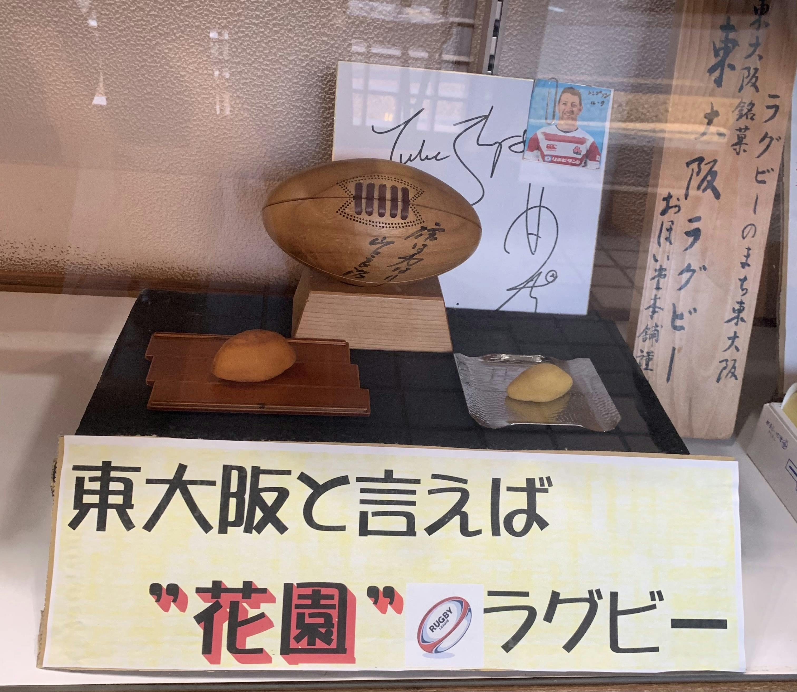 元々は『東大阪を代表する銘菓を!』というコンセプトの元、ラグビーの聖地、東大阪の市と協力して、20年ほど前に完成したのがこの銘菓【東大阪ラグビー】です。