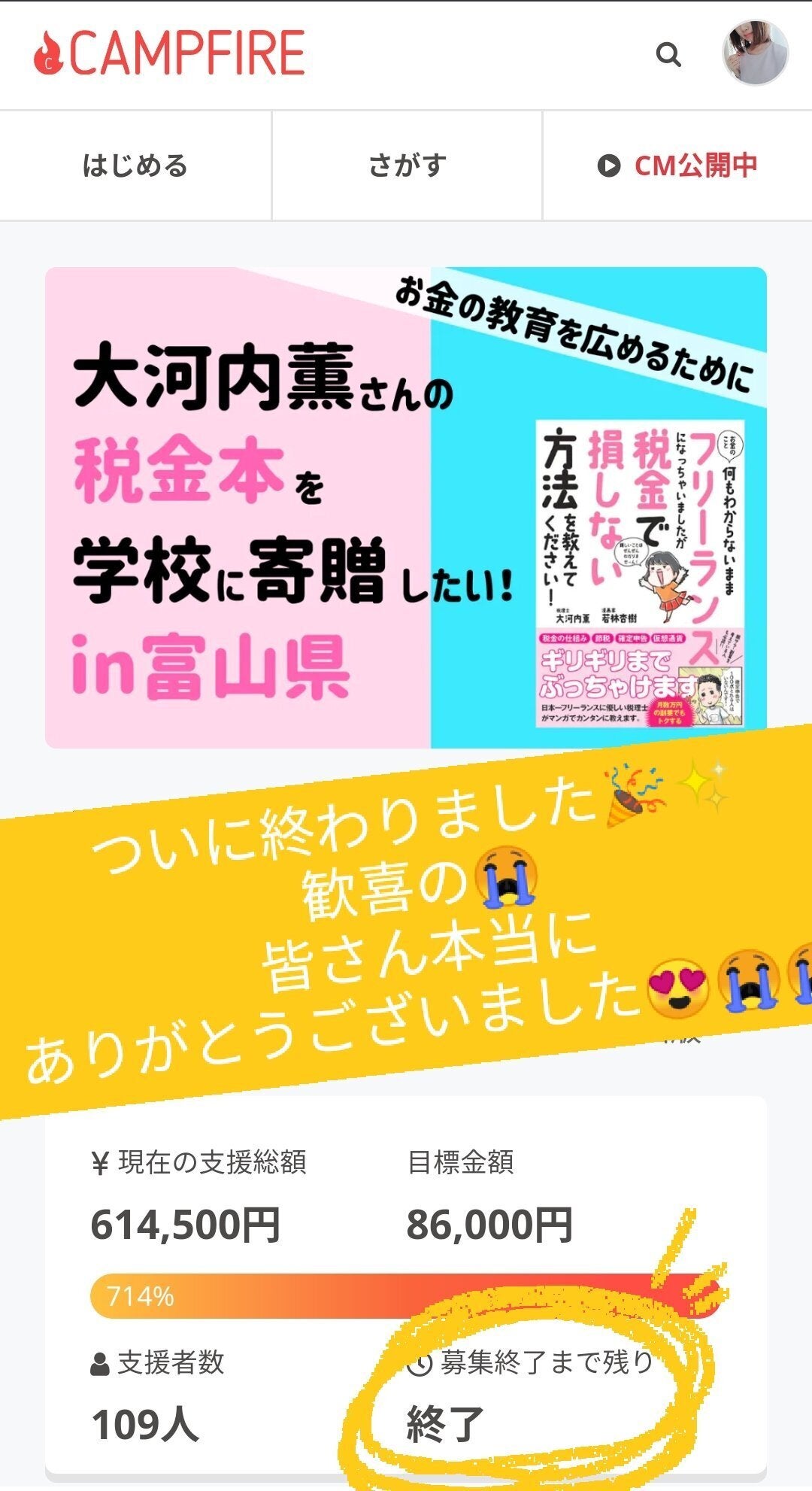 終了直前のご支援もあり、最後まで嬉しい次第でした。