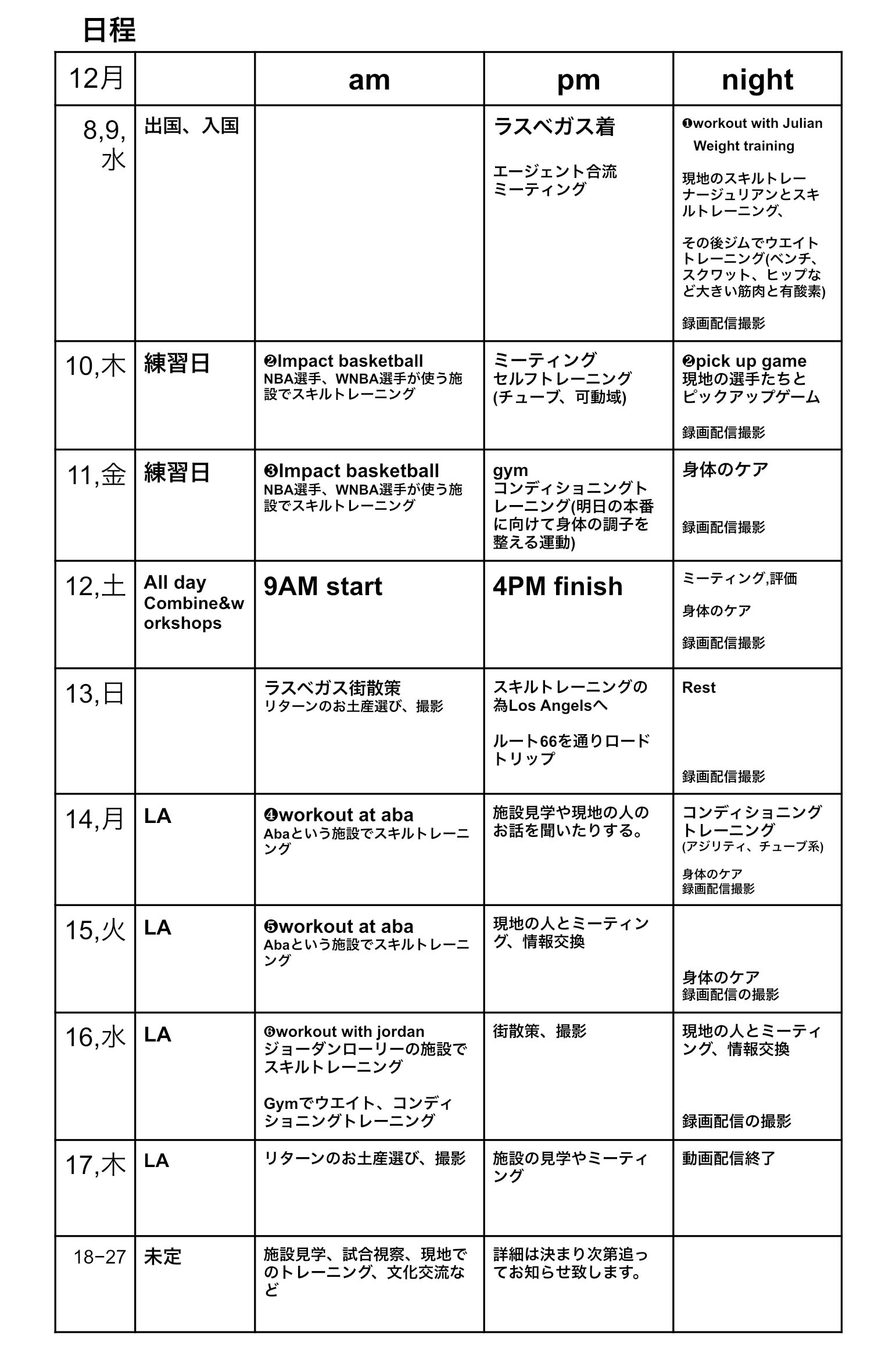 今回のコンバインはWNBAやFIBA公認のエージェント、複数のコーチからの評価が行われる公開トライアウトのようなものです。1日トレーニングやゲーム、テストをし評価を受けます。