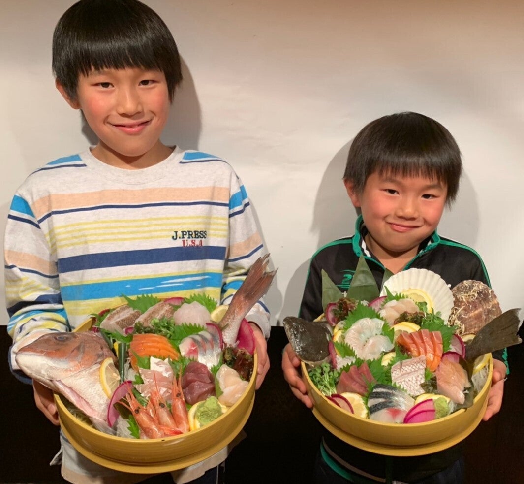 息子たちもお手伝いしてくれています!二人ともお刺身大好き!