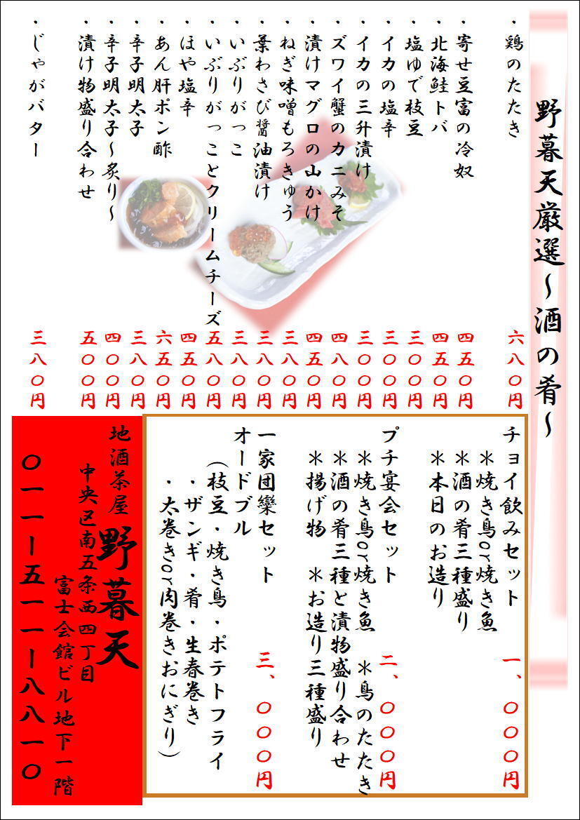すすきの 地酒茶屋 野暮天
