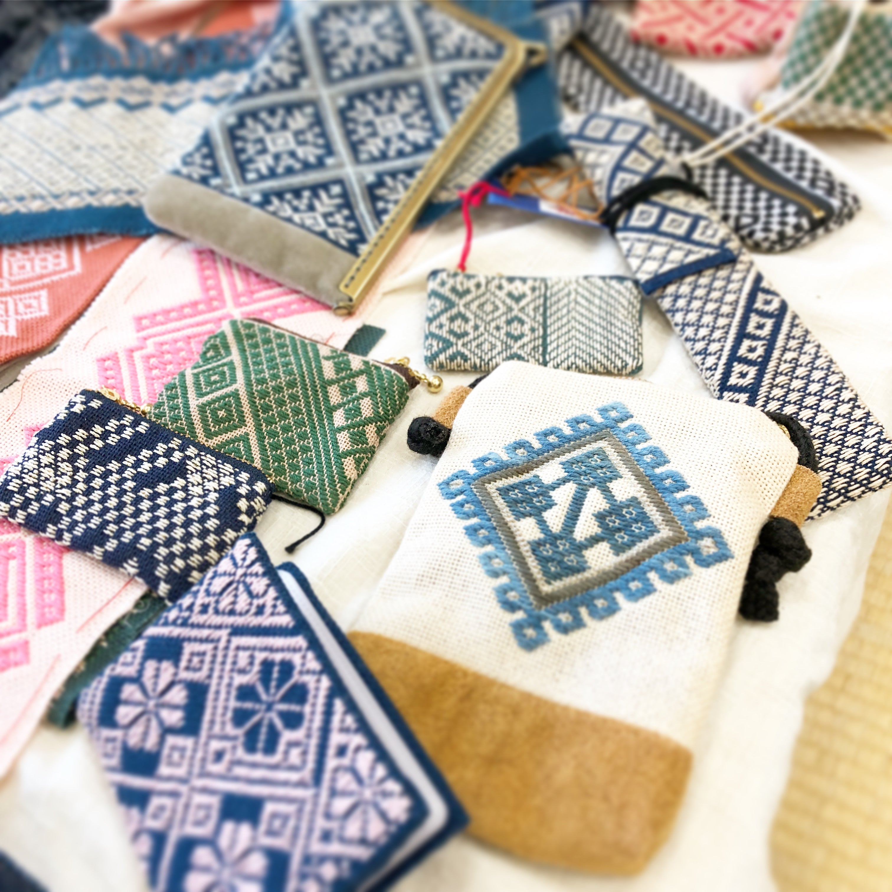 こぎん刺しに触れたことのない方も出会いの機会になるように「こぎん刺し小物」や雑貨から、こぎん刺しファンにはオーダーメイドの権利もご用意しております。