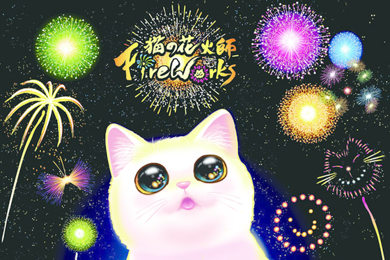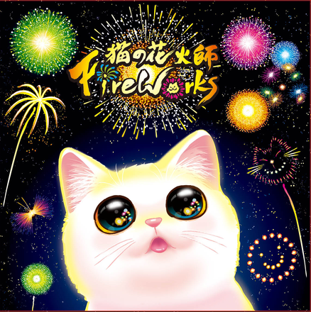 このゲームは対戦型パズルゲームで、ダイスとアクションカード、そして花火チップを使って、かわいい猫と一緒に世界首都の夜空できれいな花火を作るゲームです。