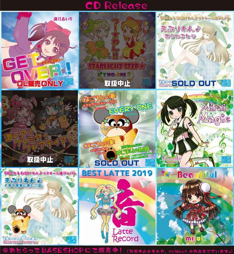 2019年までに7タイトル15曲以上のオリジナル曲を制作頒布してきました。
