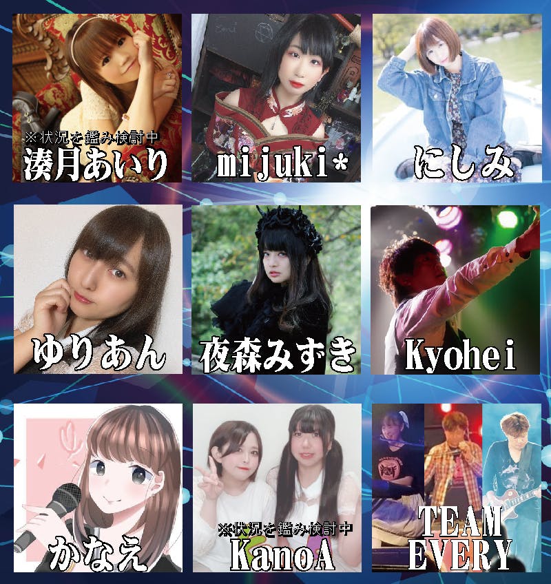 私共は個人の音楽活動をしている仲間にオリジナル楽曲を提供し、ライブを主催する音楽団体です。