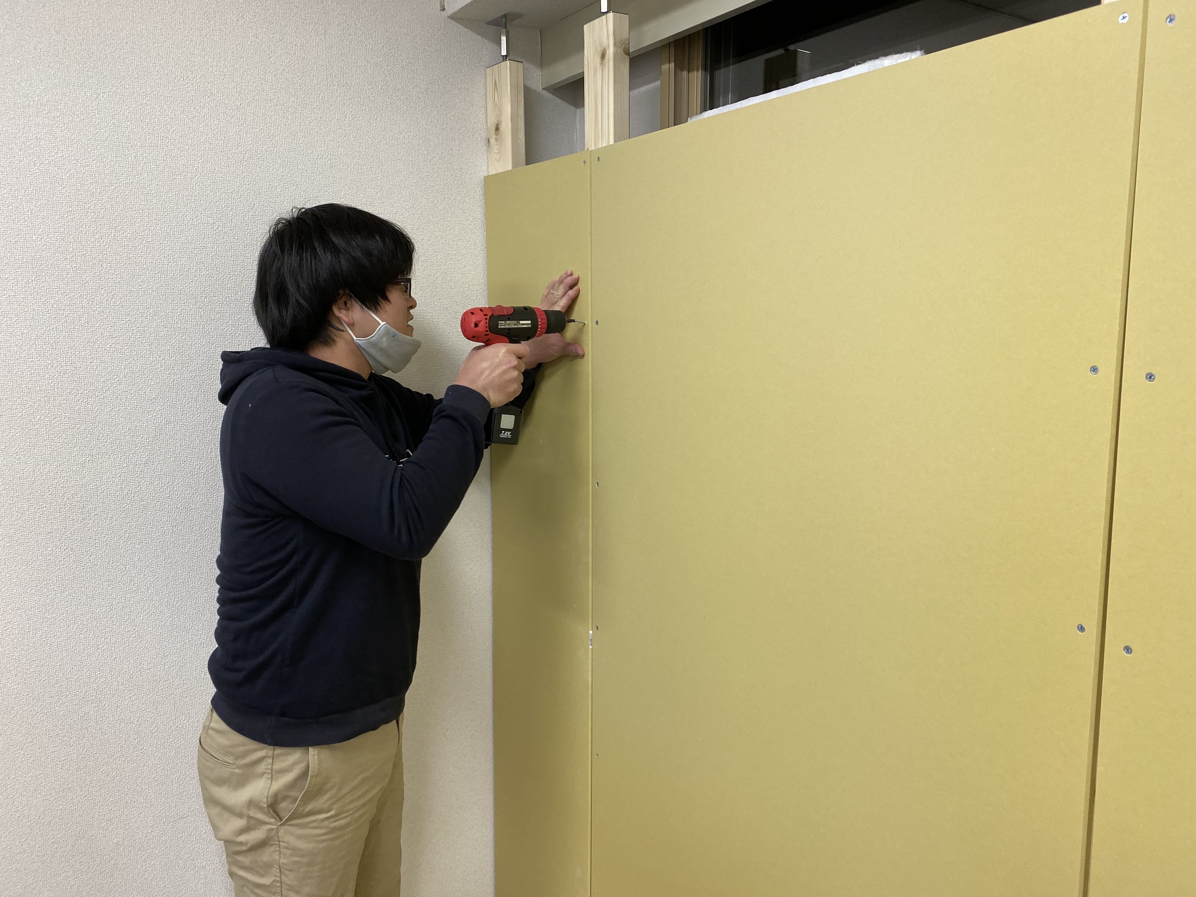 2021/01/07 21:32遅くなりましたが、工事が始まっています!今回は、全てをDIYで作成してきます!事務所スタッフと所属声優が協力をして新スタジオを作っていきます!そのため、作成スケジュールに遅れが発生するかもしれませんが、ご了承いただければ幸いです。まずは部屋全体を、スタジオエリアと事務所エリアに分けるための壁の作成です。柱を立てるために、壁部分のタイルカーペットを剥がしていきます。これが接着剤で固定されているため、なかなか大変な作業でした。今回はみずきがお手伝いに来てくれました!ちなみに、この写真は11月下旬のものです。 もっと見る