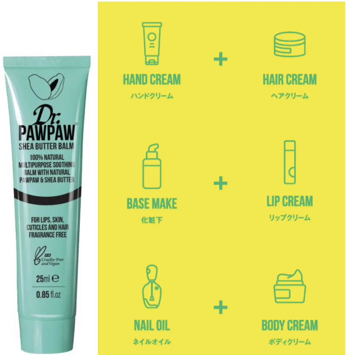 「ドクターポーポー」のフレグランスフリーバームです。乾燥を緩和し、唇、爪、手、かかと、肘等を保湿します。化粧下地としても、髪の毛の最後の仕上げや眉を整えるときにも。