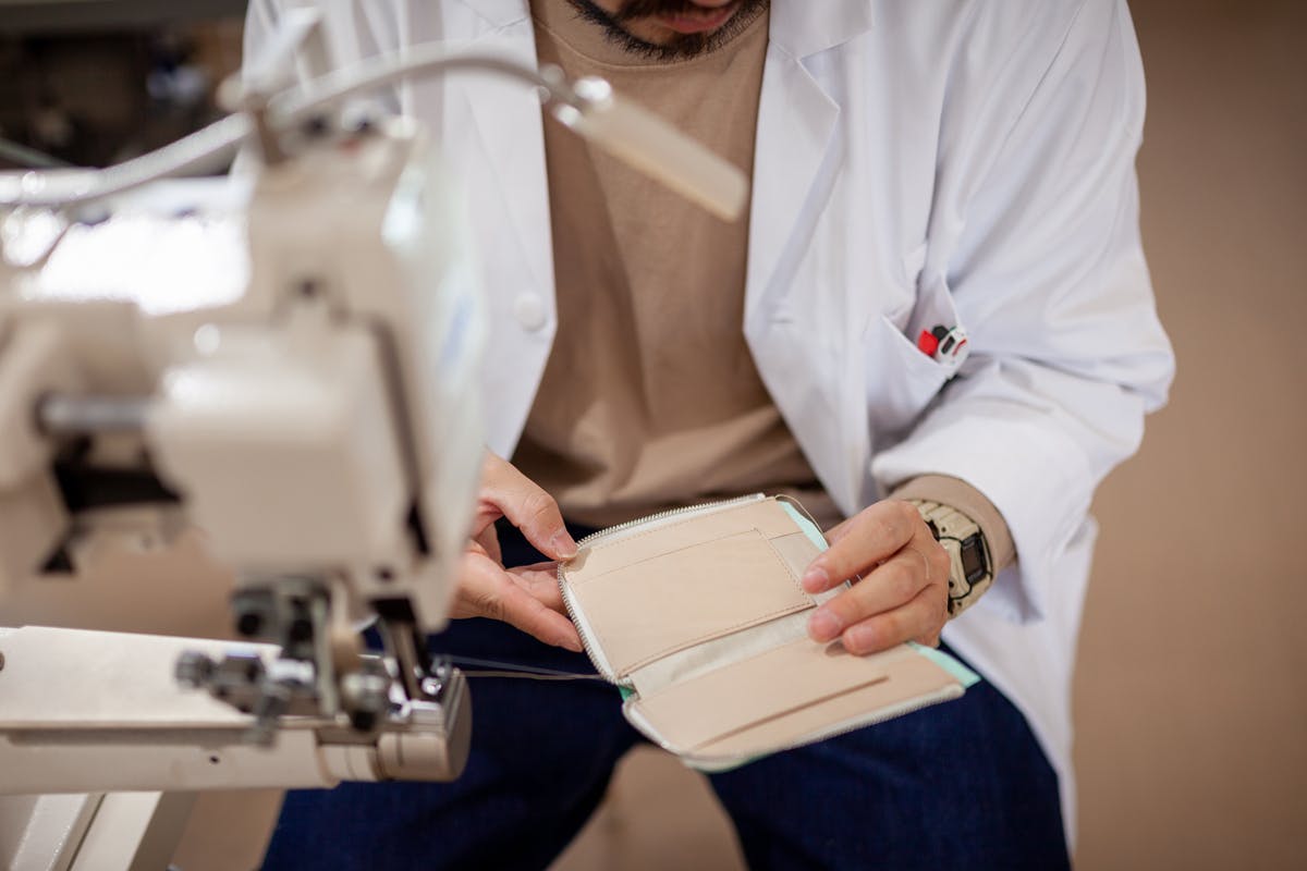 鞄とは違う繊細な工程に気遣い、心を込めたものづくりにこだわっております。また立体成型などこれまでの鞄製造で培った技術も最大限に活かし、革小物を作っています。
