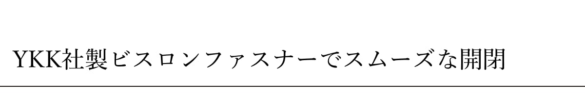 キレイな革の色とファスナーの色を合わせることでファッションアイテムとしての軽やかさが感じられるのと、金属ファスナーで起こりがちな磨耗による不具合も防げます。