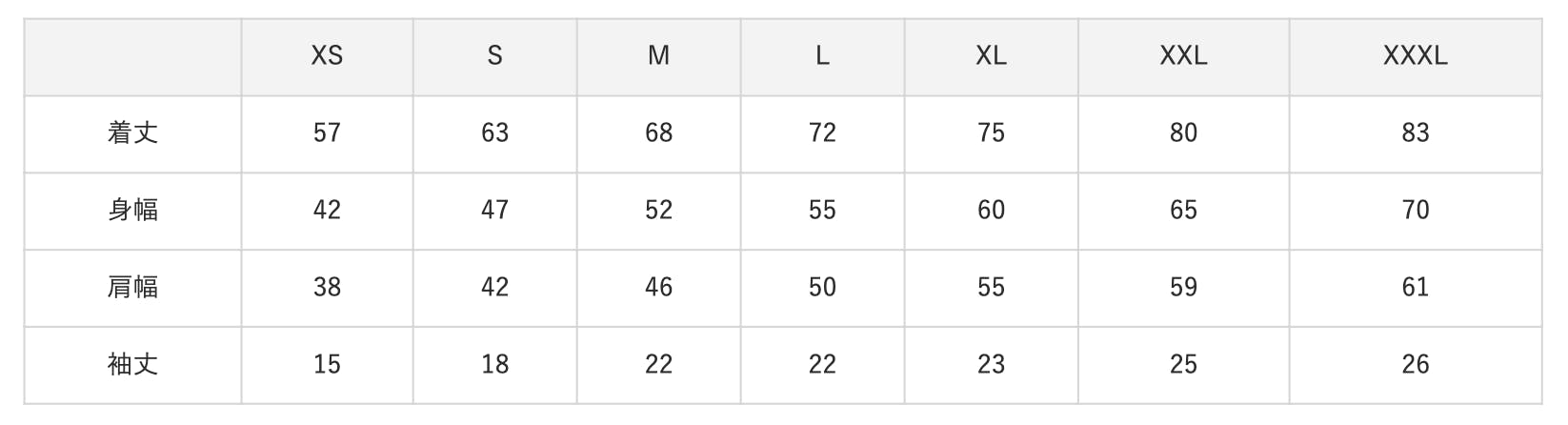 ※ サイズは XS / S / M / L / XL / XXL / XXXL からお選びください