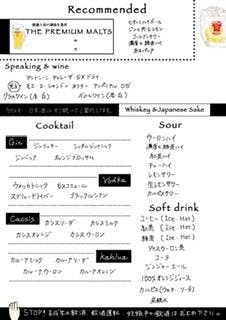 飲み物/画像は途中段階で申し訳ありませんがイメージで作成したものを添付します。価格帯は500円前後です。日本酒、ウイスキーは日替わりで数種置く予定です。