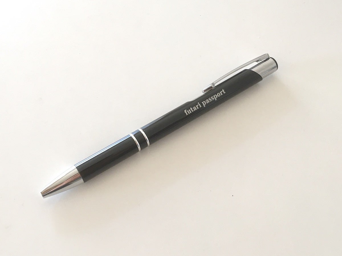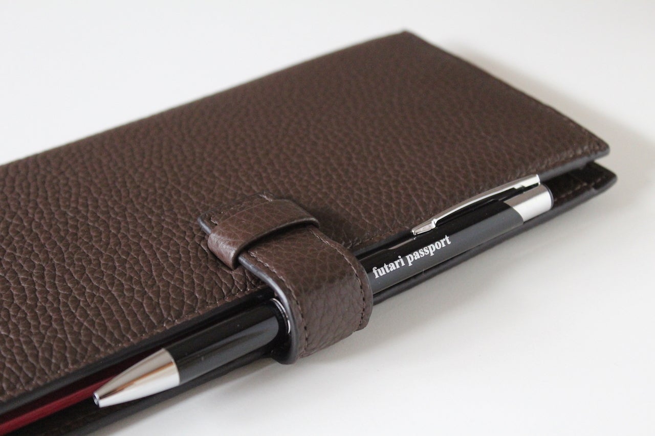そして今回、各futari passportは、ペンホルダーに収納しご使用いただけるロゴ入り特製ペンをセットにした特別パッケージでお届けいたします。