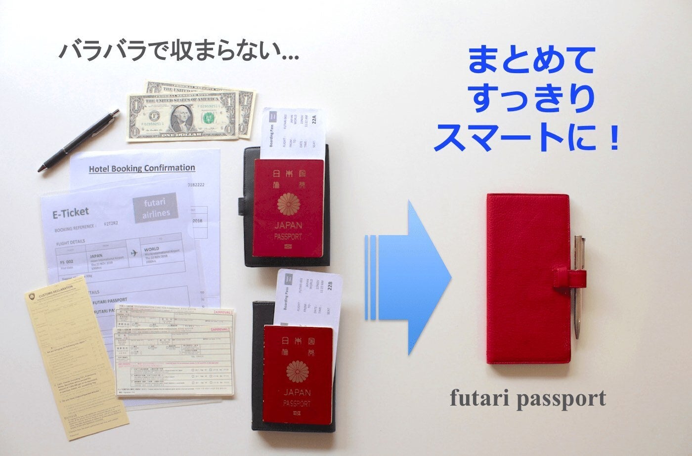 こんにちは。「ふたり」向けに特化し、”旅”や”食”などライフスタイル商品を作っているfutari styleと申します。今回ご紹介する「futari passport」は、大切なパートナーとの旅(人生)を、もっと楽しく、もっと幸せにする、つながる夫婦のパスポートケースです。