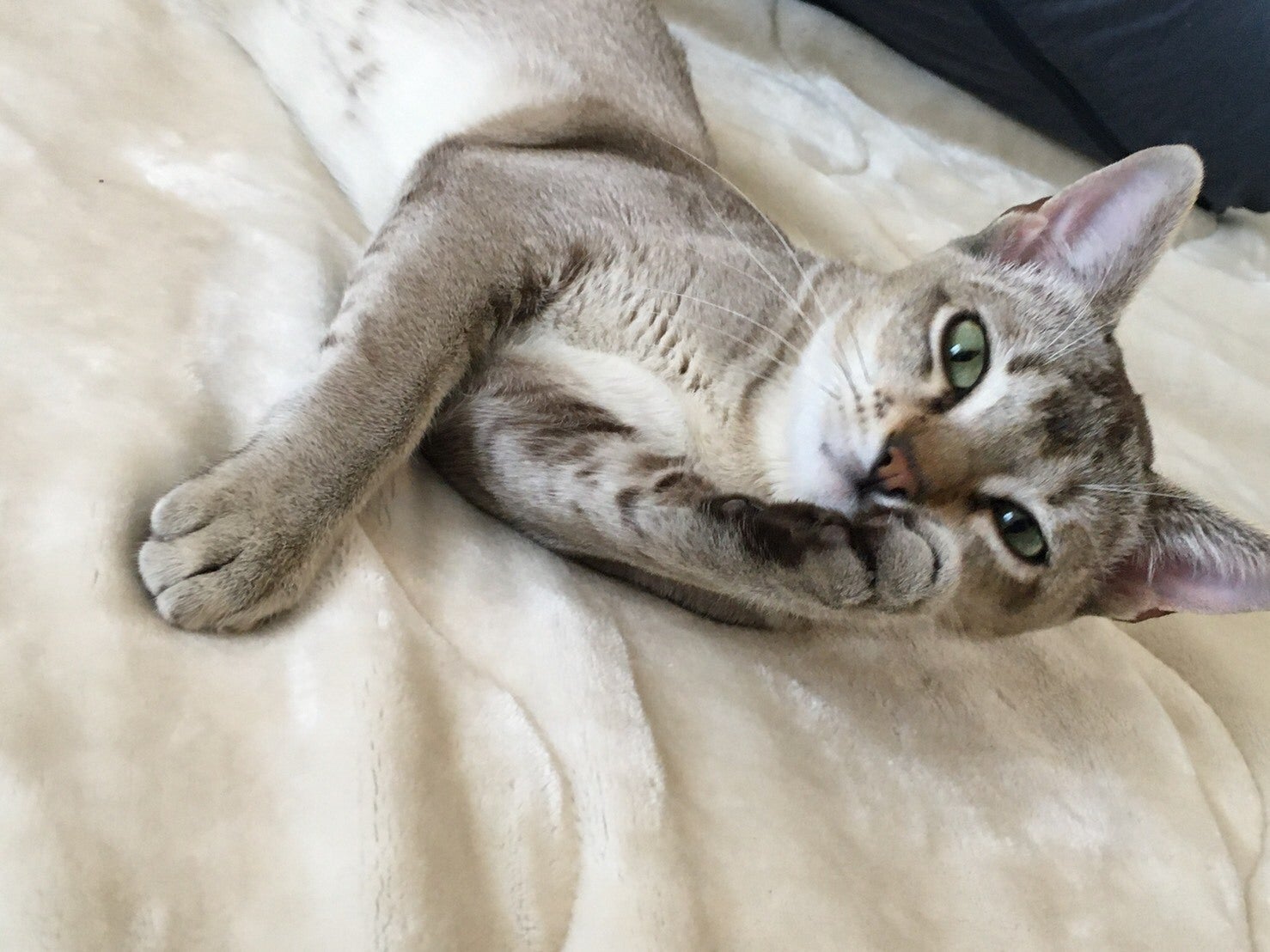 自分の毛並みの質感に似ているのか、このお布団が大好きみたいです。