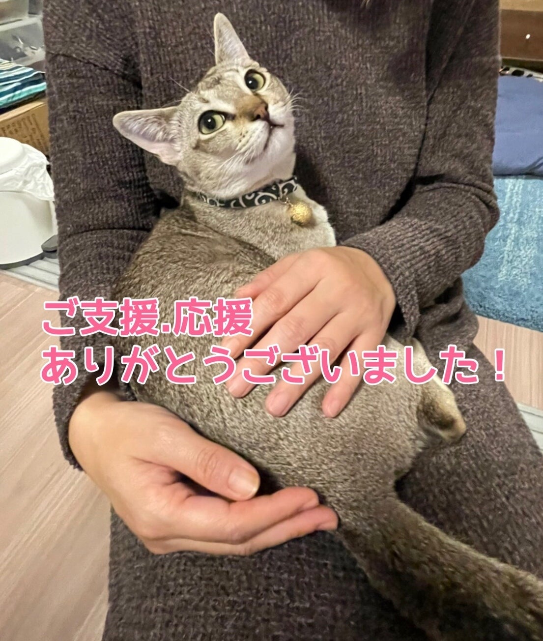 おはようございますヽ(´▽`)/経過観察1日目ドキドキしましたが無事終わり2日目に入りました!投薬終了後2.3日以内が1番再発しやすいため、許される範囲でなるべく遅く仕事に行き、なるべく早く帰る毎日です(^_^;)本当なら四六時中一緒に居て様子を見ておきたいのですが...そうもいかず( ; ; )遅くなりましたがFIPの治療費明細になります!↓そして以下がcampfireのご支援明細になります↓以下がご支援のトータルになります!↓本にありがとうございましたm(_ _)m皆様のお陰でちくわに治療を受けさせられ、寛解という希望の中でちくわと過ごすことが出来ています!今リターンをまとめております(o^^o)挑戦中が怒涛のような毎日だったため、一昨日からリターンの整理を始めまして、直接のご支援で数名連絡先が分からない方がいらっしゃり、ちょっと苦戦していますm(_ _)m暫しお待ちくださいませm(_ _)m昨日Amazonほしいものリストからちくわに素敵なプレゼントが届きました!寒がりのちくわもこれで温かく冬が越せます(*^_^*)ありがとうございます!それではまた更新いたします☆
