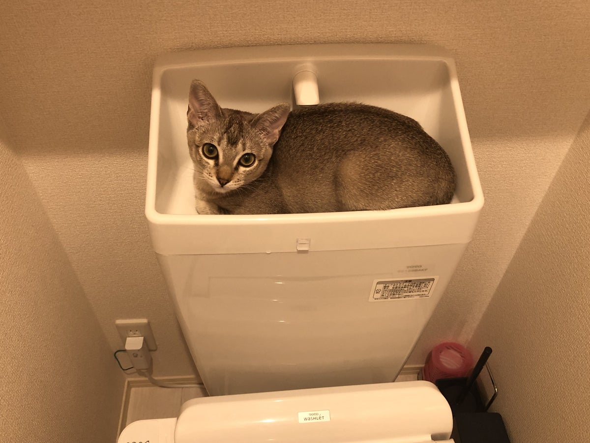 トイレに行った後、必ずチェックしに来てお気に入りの場所にすっぽり入るちくわ
