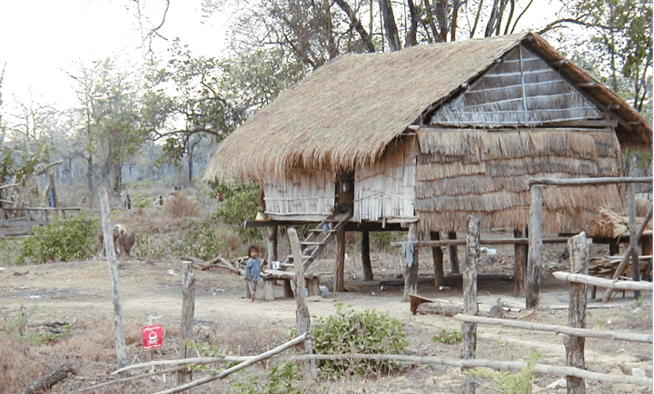 ■写真:2002年3月バッタンバン州の地雷撤去現場を視察した帰り道の道端で見た地雷原のなかで生活する村人たち