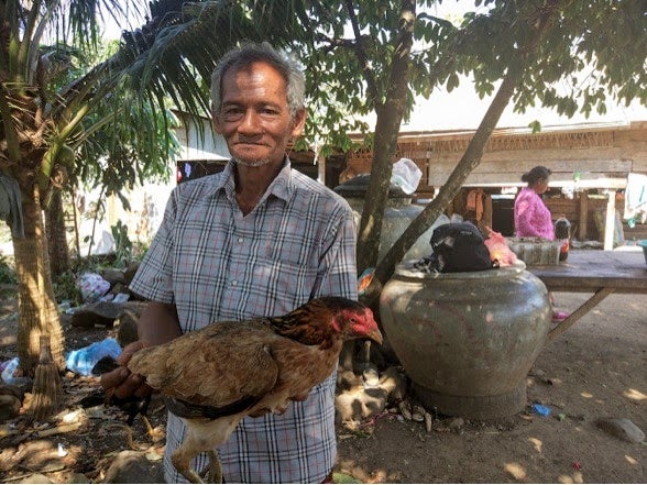 ■現地NGO: CRDNASEの農業専門家から教えてもらった薬草の発酵液を使った養鶏で、鶏の飼育ができるようになったソーンさん