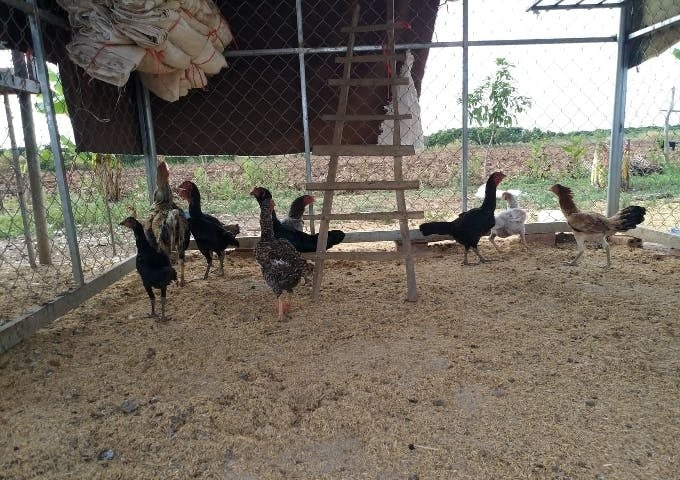 ↑テラ・ルネッサンスの事業で設立された家畜銀行から貸し出された鶏を飼育する様子