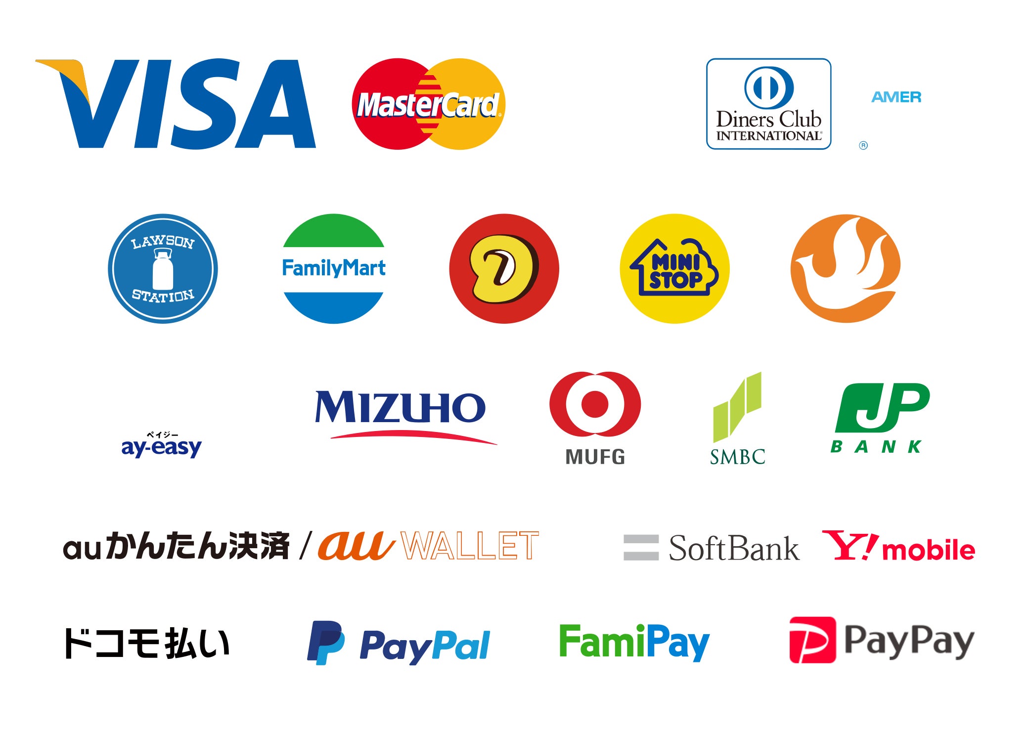 A.支払い方法は、クレジットカード払い、コンビニ払い、銀行振込、キャリア決済、PayPal、FamiPay、PayPayが利用できます。
