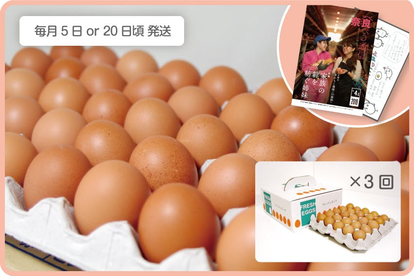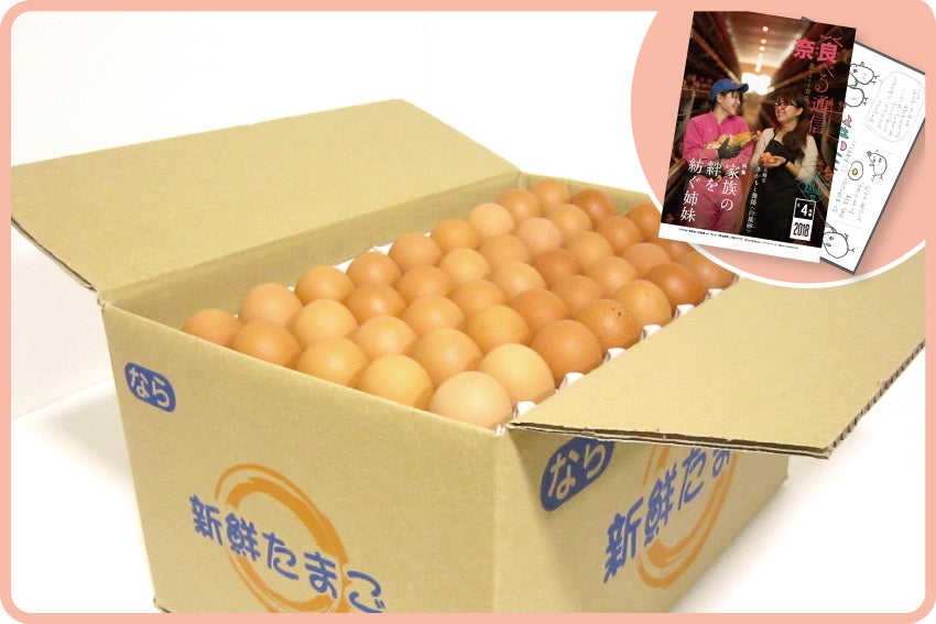 「白鳳卵」120個入りの1箱と、姉妹のストーリーが詰まった小冊子、お礼の手紙をお届けします。「白鳳卵」は臭みがなく、コクと甘みたっぷりのおいしい卵です。「おいしい卵は、健康な鶏から」をモットーに、餌へのこだわりはもちろん、腸が丈夫で健康な鶏を育てることを大切しています。小冊子は、雑誌『奈良食べる通信』で特集された際の記事で、姉妹が継ぐことになった経緯などを紹介しています。(卵は10個入りなどのパックによる小分けはしていません。ご了承ください)