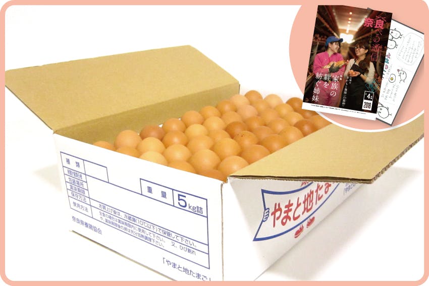 「白鳳卵」50個入りの1箱と、姉妹のストーリーが詰まった小冊子、お礼の手紙をお届けします。「白鳳卵」は臭みがなく、コクと甘みたっぷりのおいしい卵です。「おいしい卵は、健康な鶏から」をモットーに、餌へのこだわりはもちろん、腸が丈夫で健康な鶏を育てることを大切しています。小冊子は、雑誌『奈良食べる通信』で特集された際の記事で、姉妹が継ぐことになった経緯などを紹介しています。(卵は10個入りなどのパックによる小分けはしていません。ご了承ください)