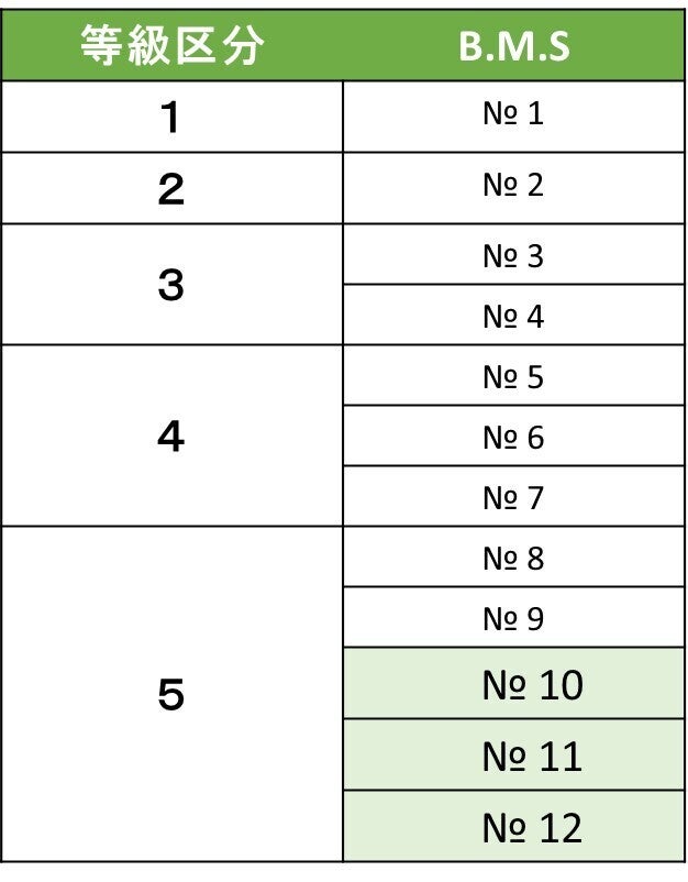 B.M.Sとは、ビーフ・マーブリング・スタンダードの頭文字をとったもので、どの程度サシ、つまり霜降りが入っているかを表したものです。A5等級の中でも上位の№10~12クラスは、通常高級ステーキハウスや百貨店で取り扱うような最上級クラスのもの。