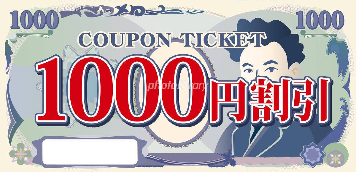 ○半額割引き券+1ドリンクサービス券をお届け致します(1回限り)。