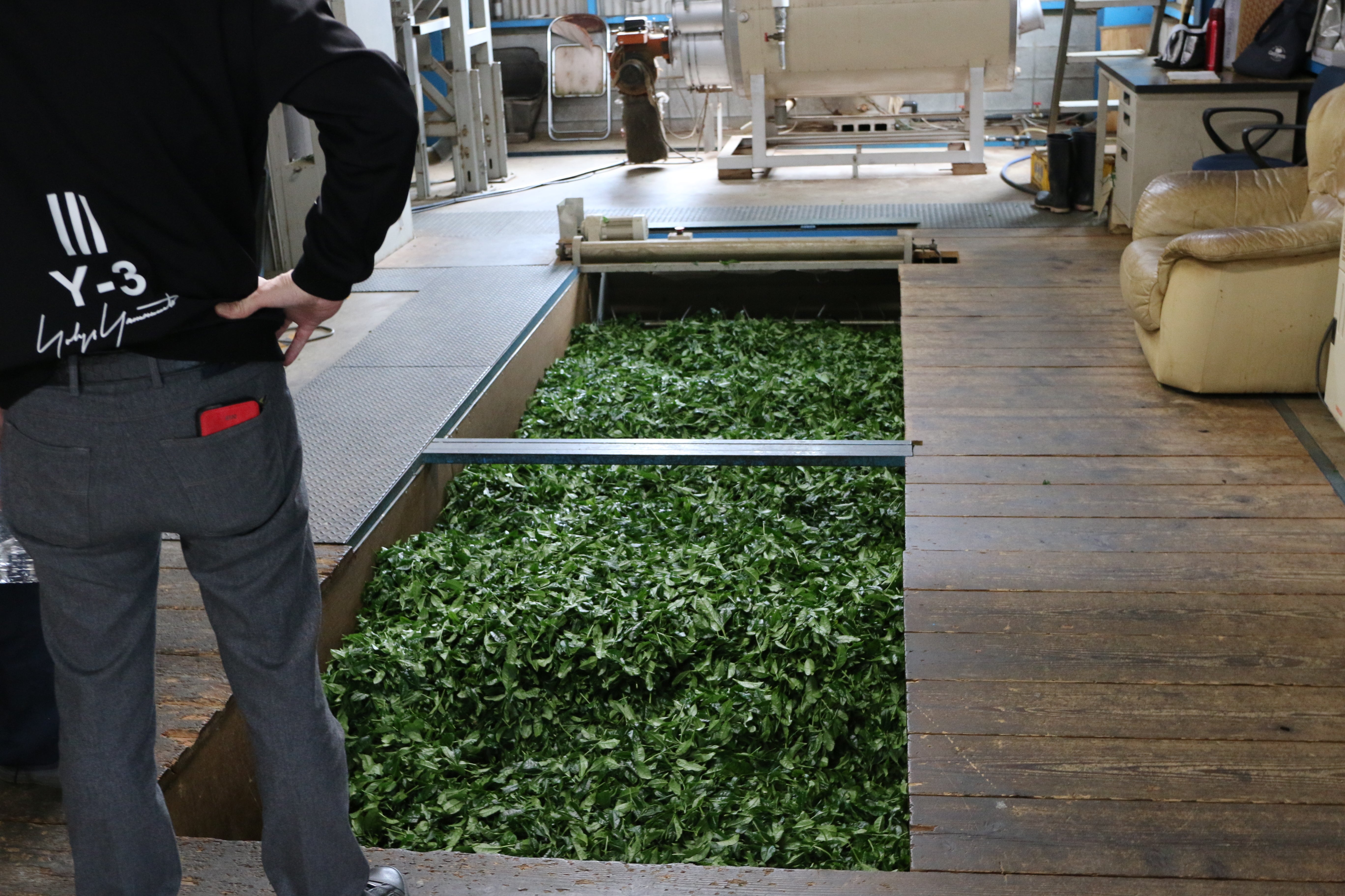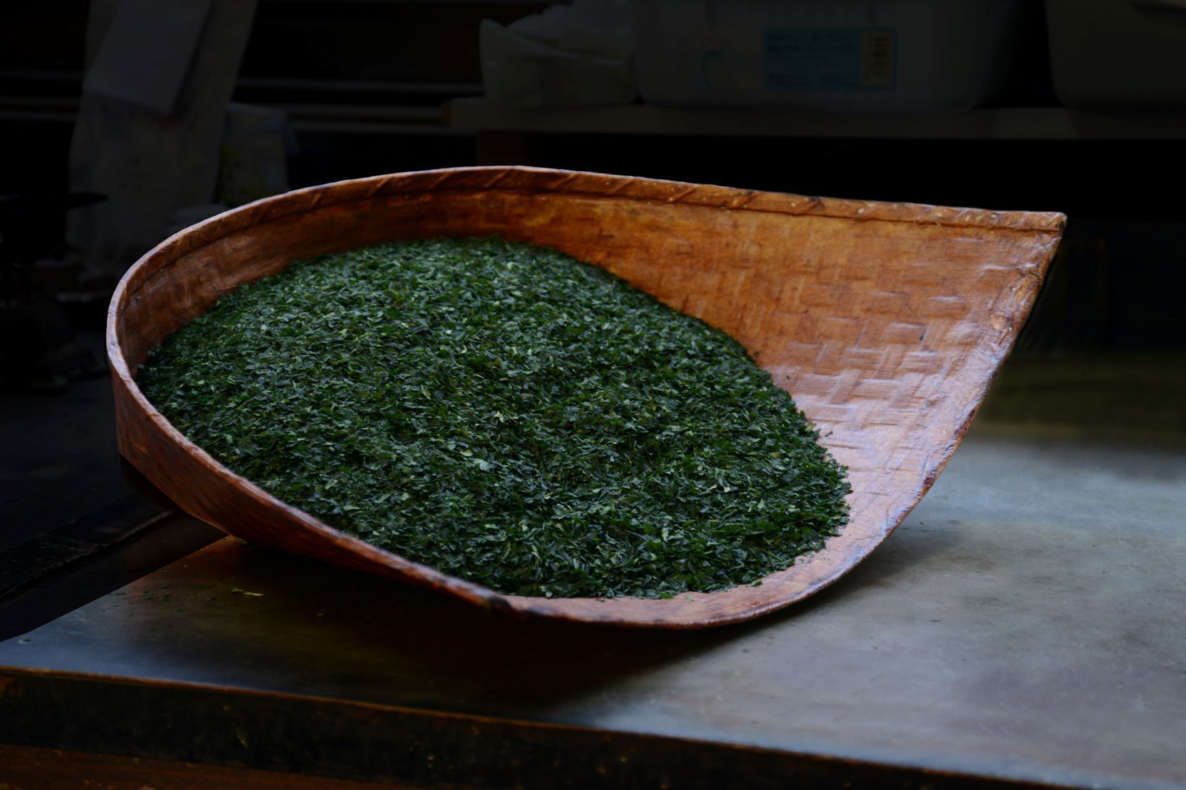 煎茶と違い、揉み加工をする事なく、蒸らし乾燥をします。