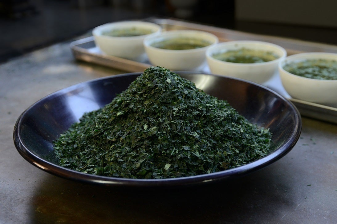 旨味成分の香りがまるで(青のり)の様な香りもする事から好きな方は茶葉を砕いて、お茶漬けにふりかけて食べる事もあり。