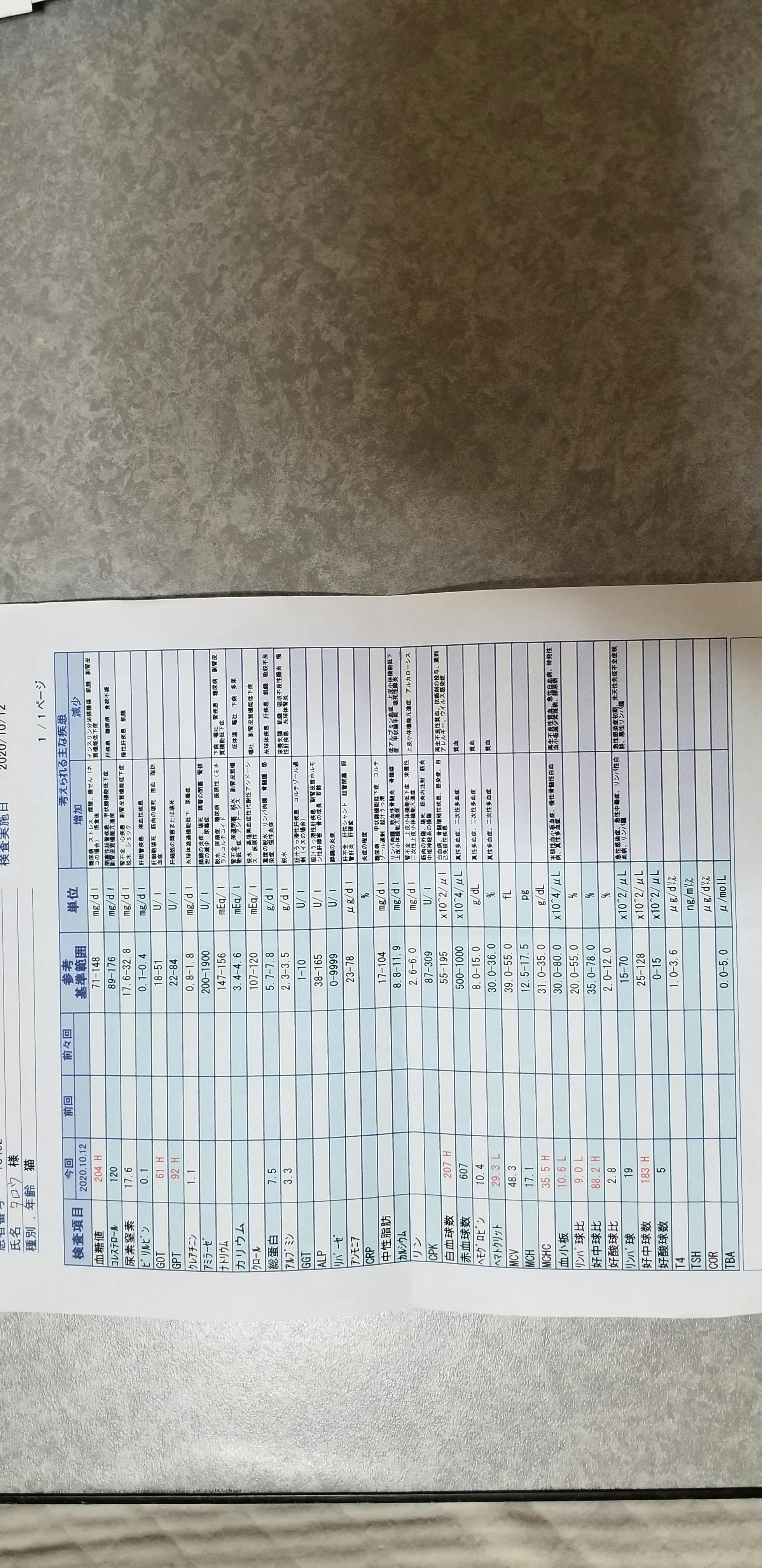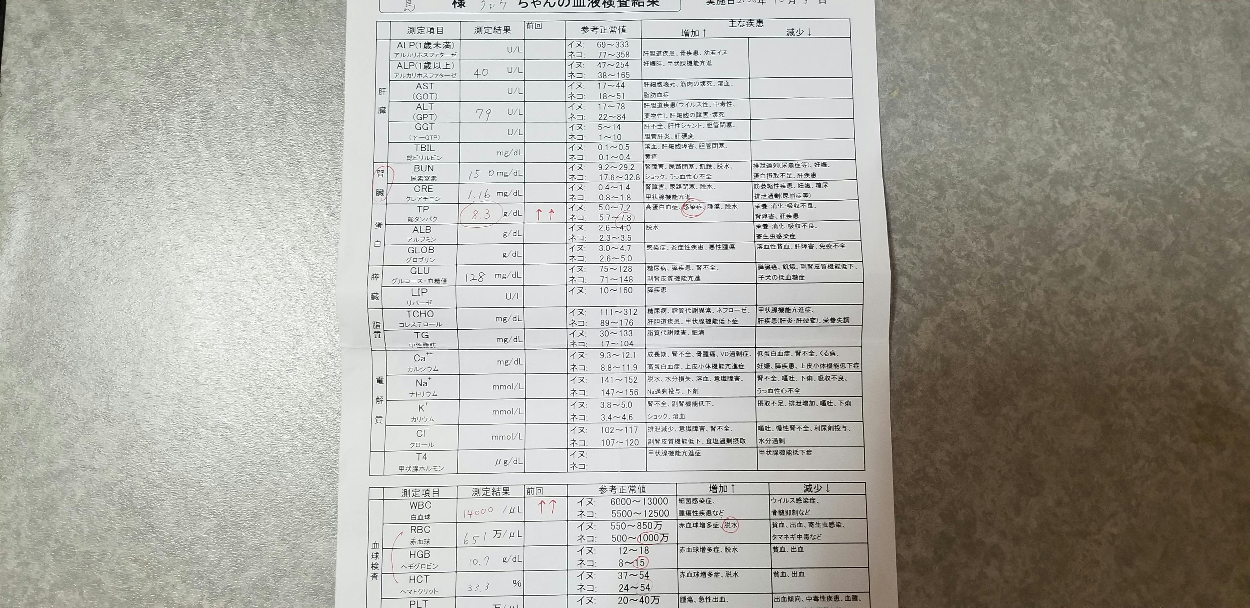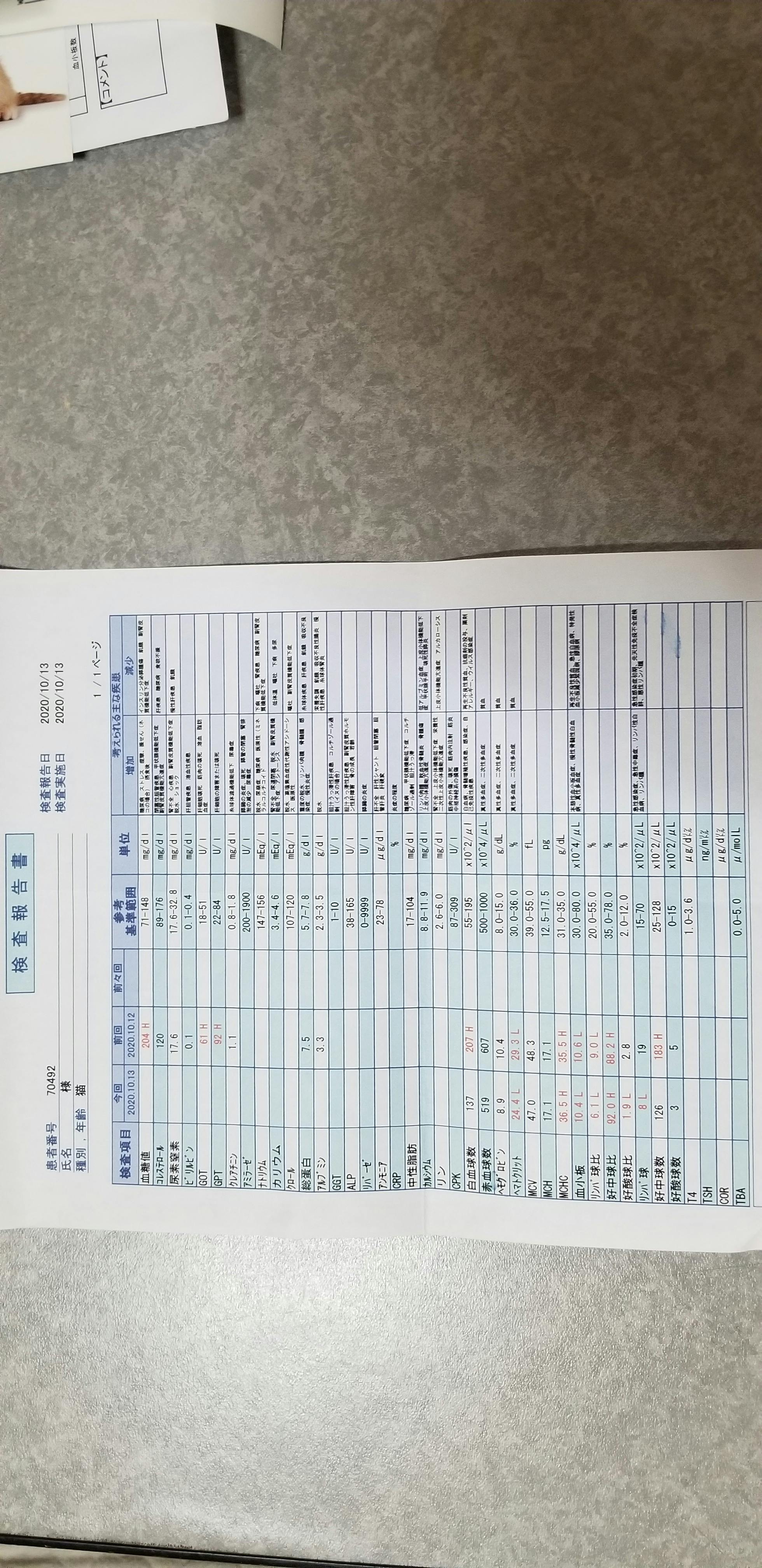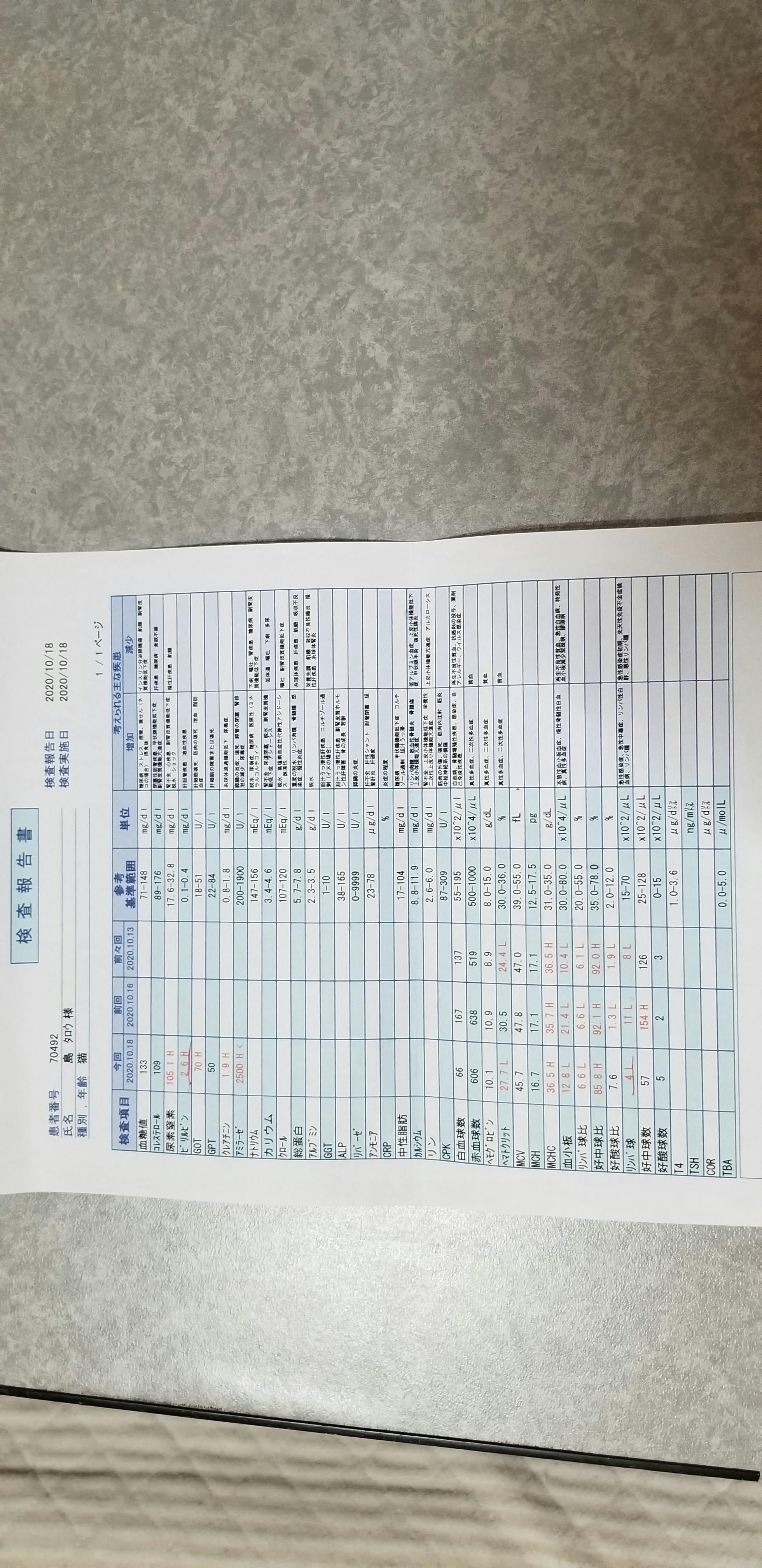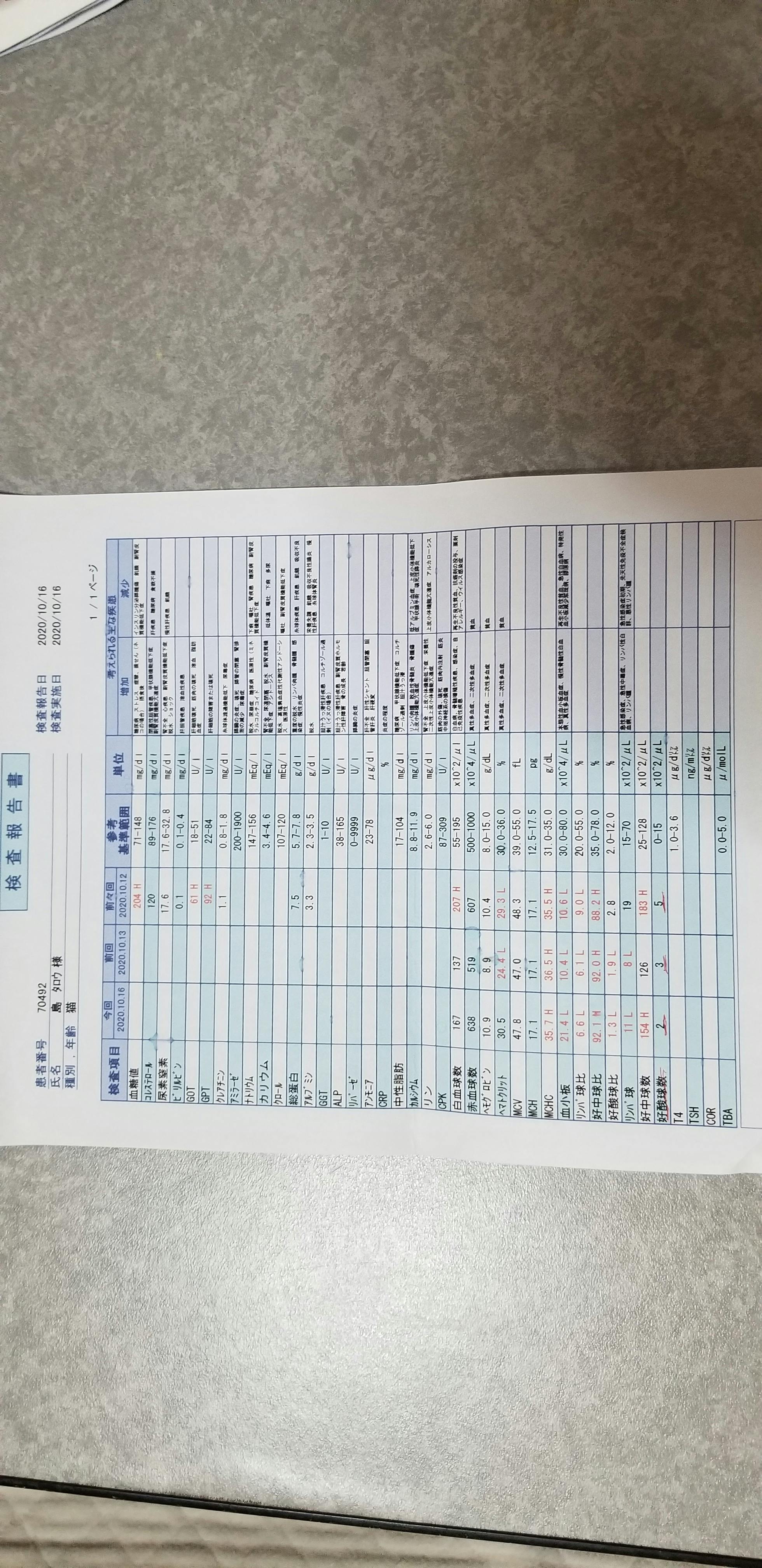 10月18日血液検査、インターフェロン、抗生剤、炎症剤等を打ってもらいました。