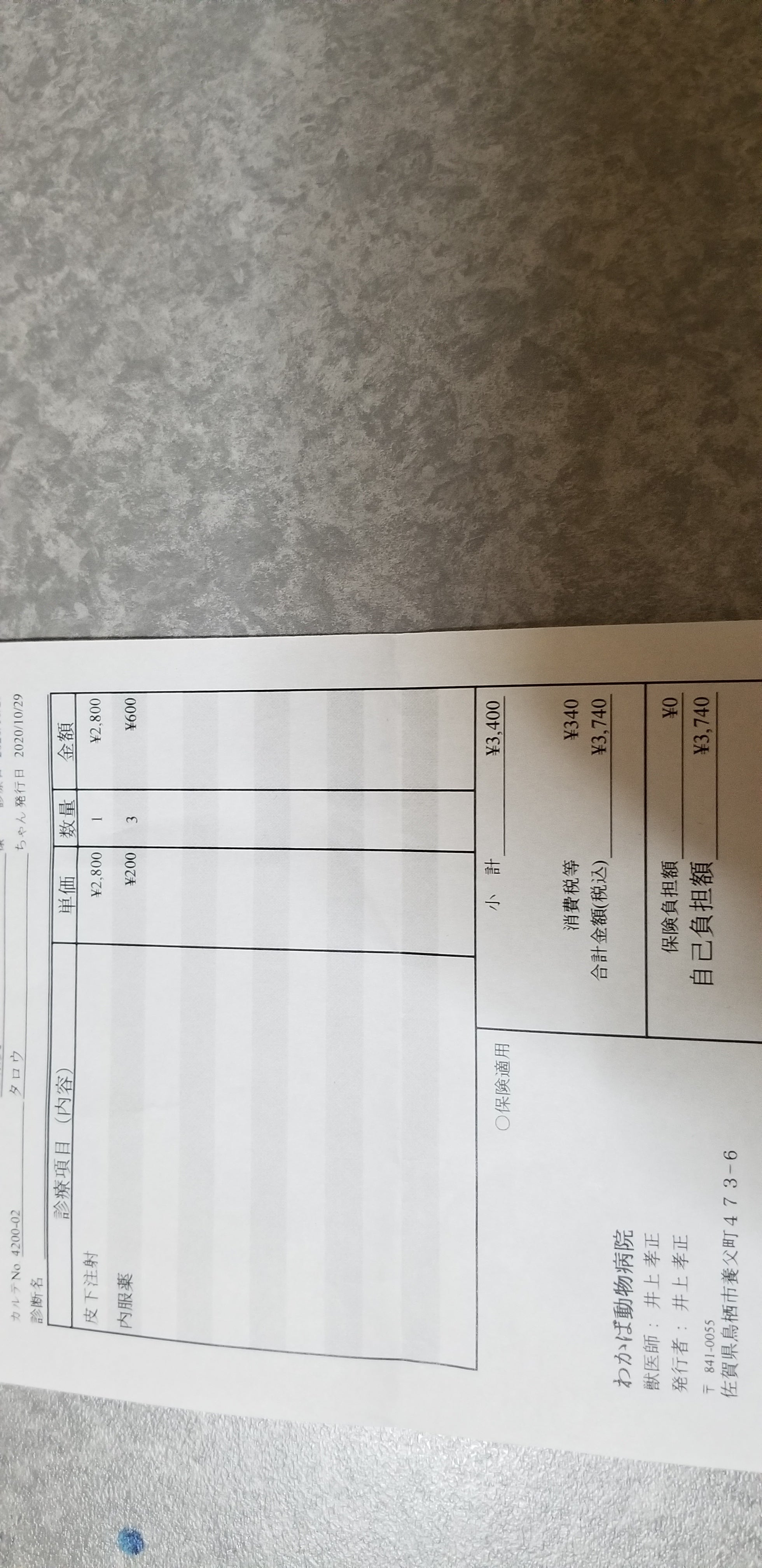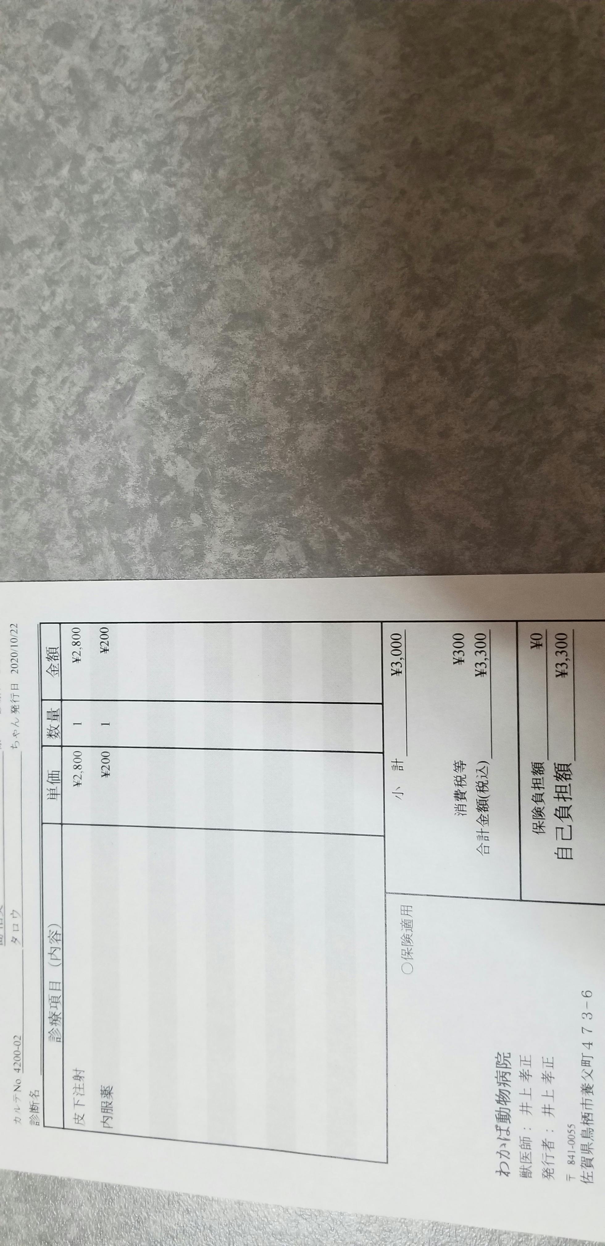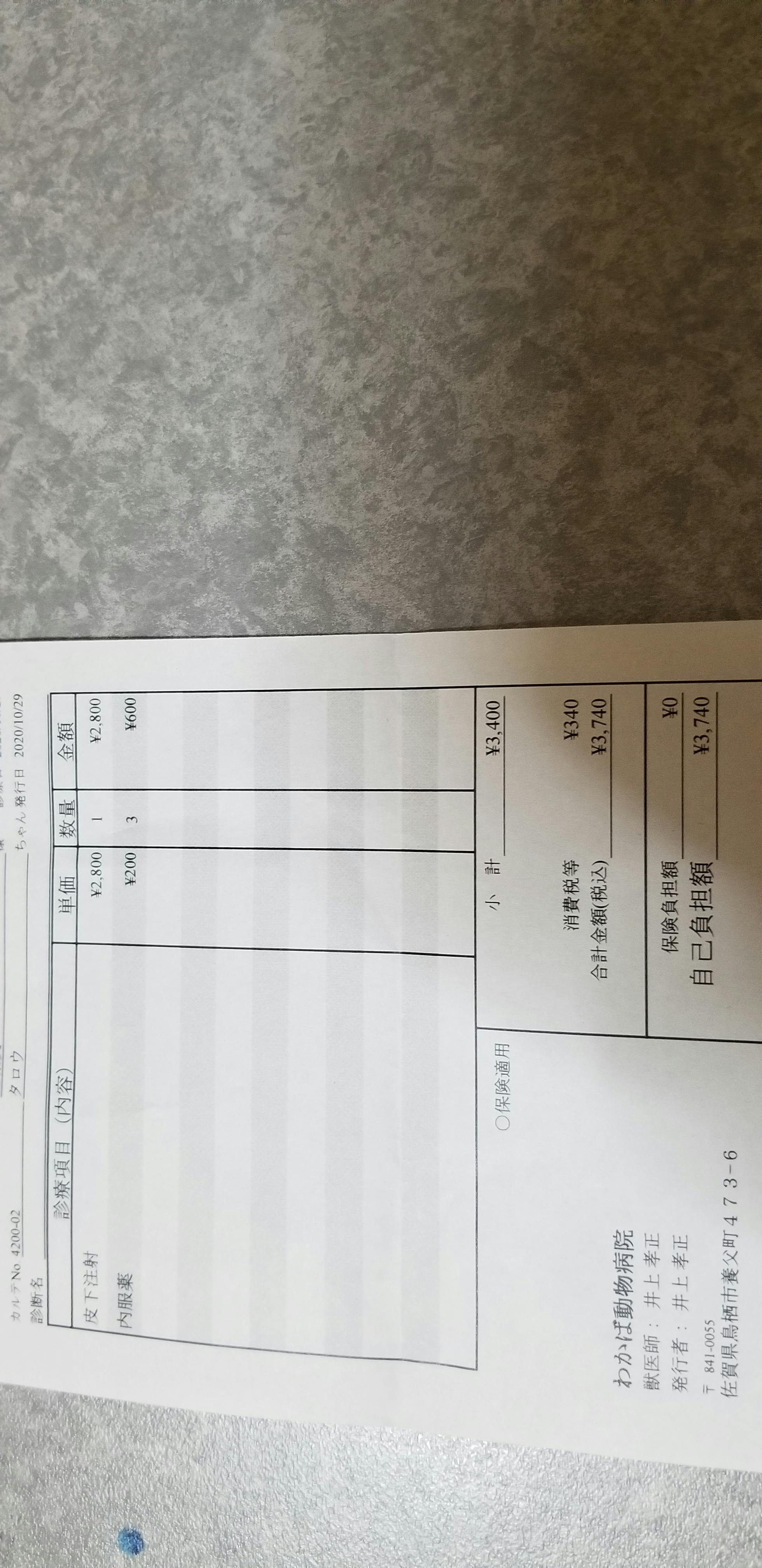 10月29日栄養剤打ってもらい内服薬を処方されました。