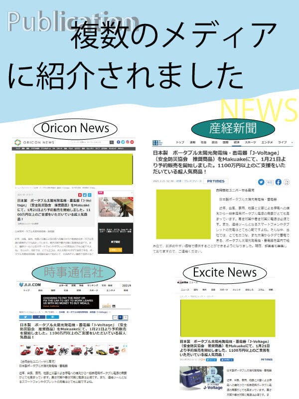 国内メーカーである合同会社ユニバーサル育児の日本製ポータブル太陽光発電機・蓄電器も多数種類があり、より充実なラインナップを皆様に提供できるためにはより費用が必要です。そのための資金といたします。「J-Voltage」は米国Chicago、LasVegasで10年以上経験した日本人と日本において40年と工場を運営している神奈川県の企業とタッグを組んだ、日本と米国の融合で幕を開けた商品です。