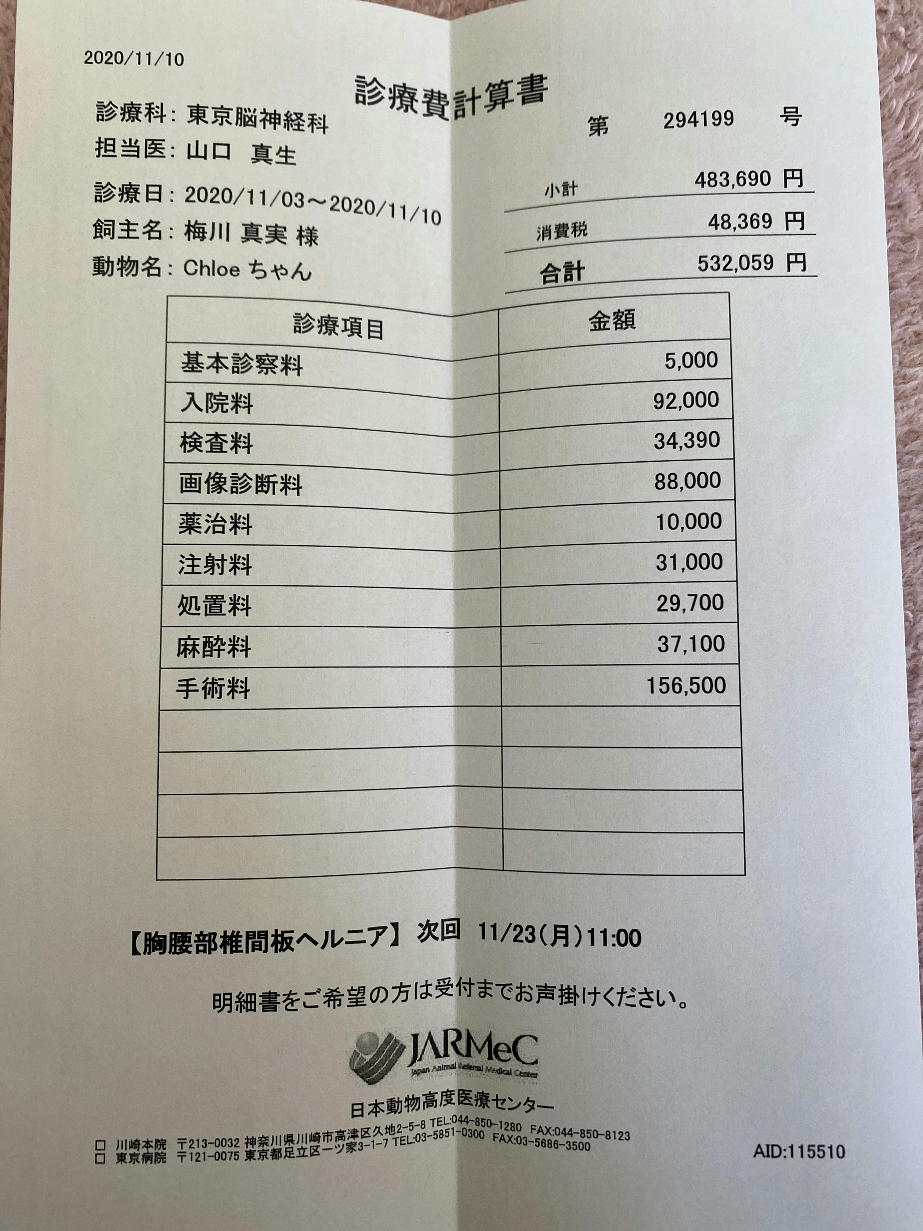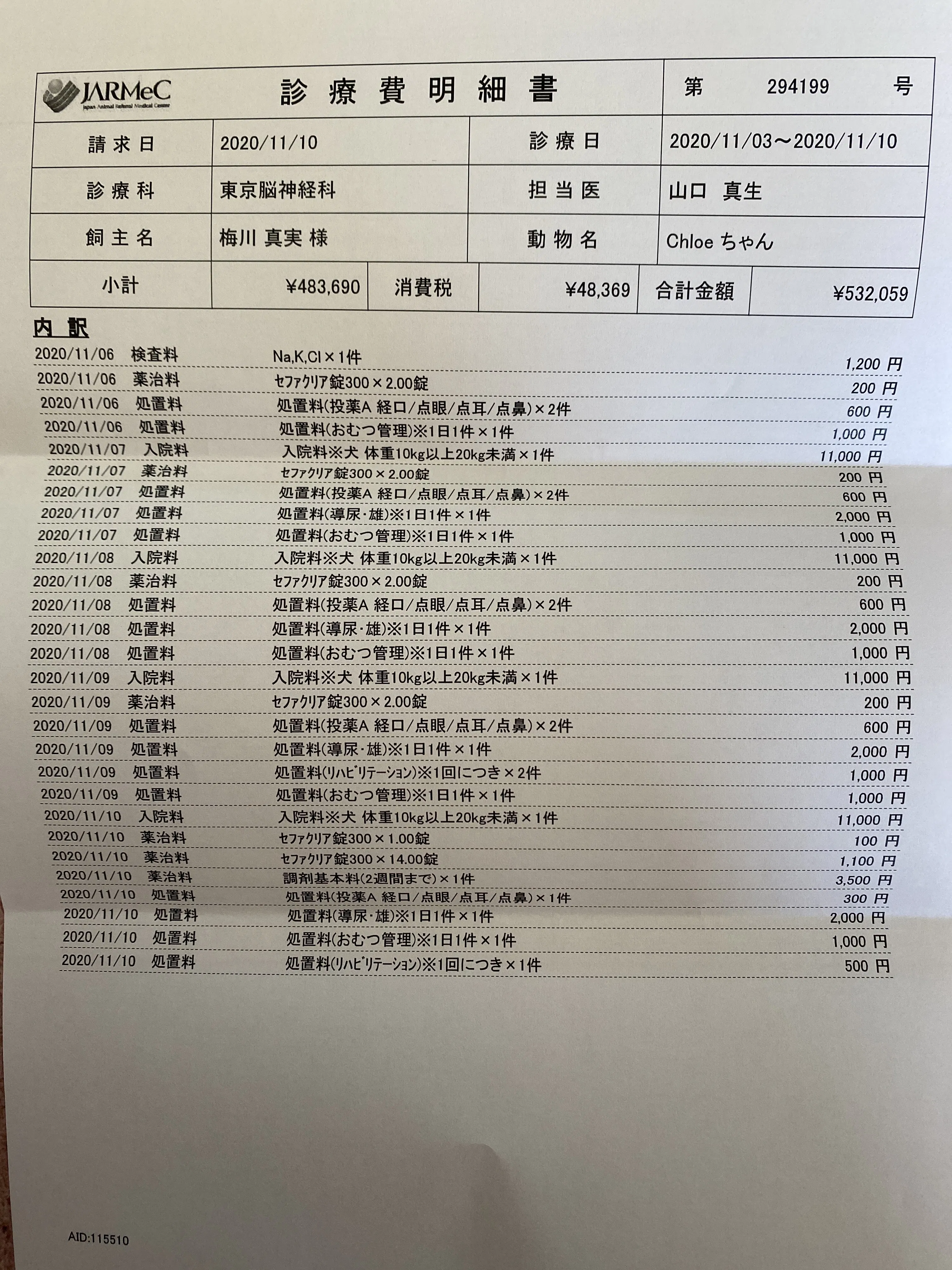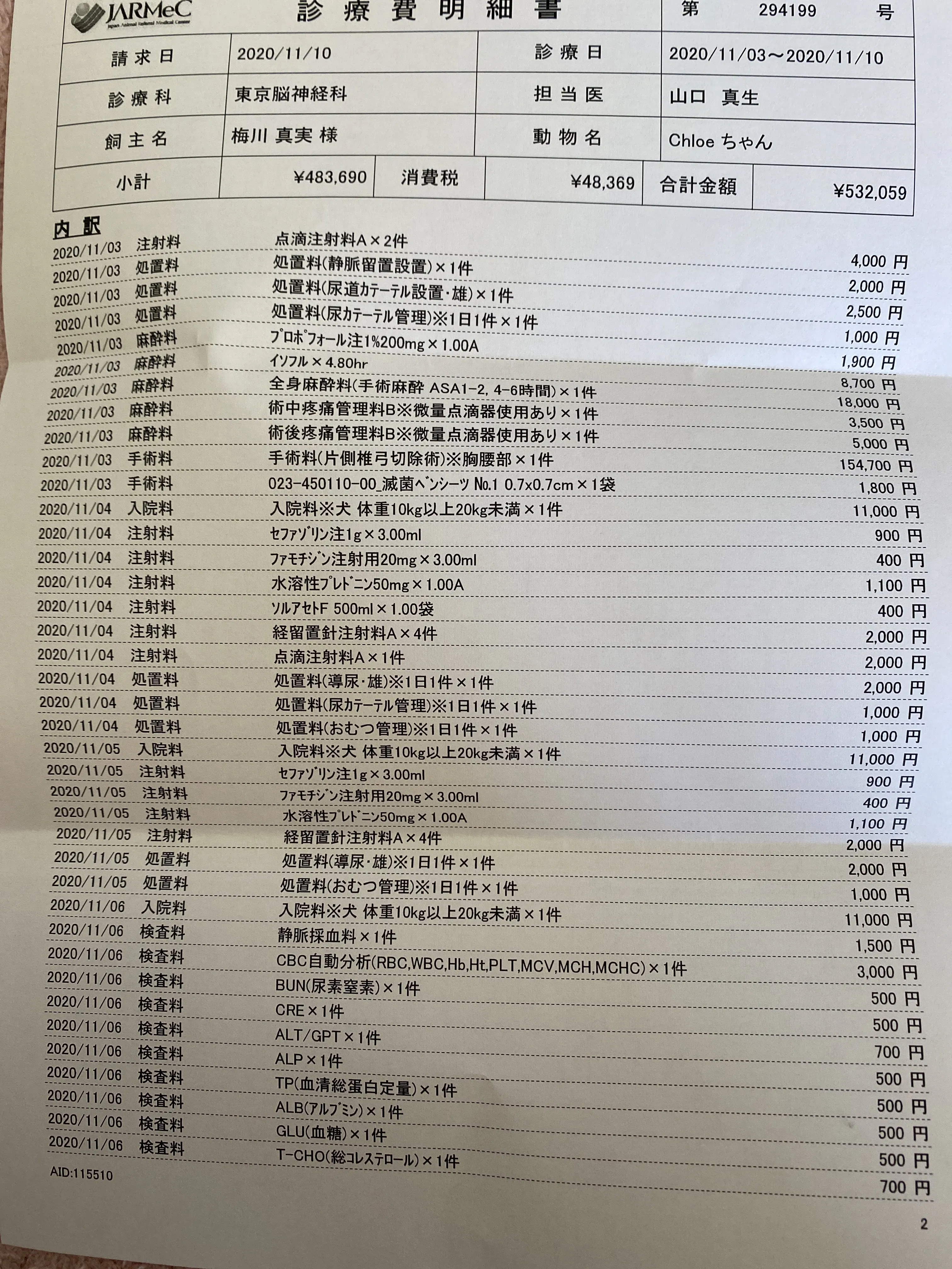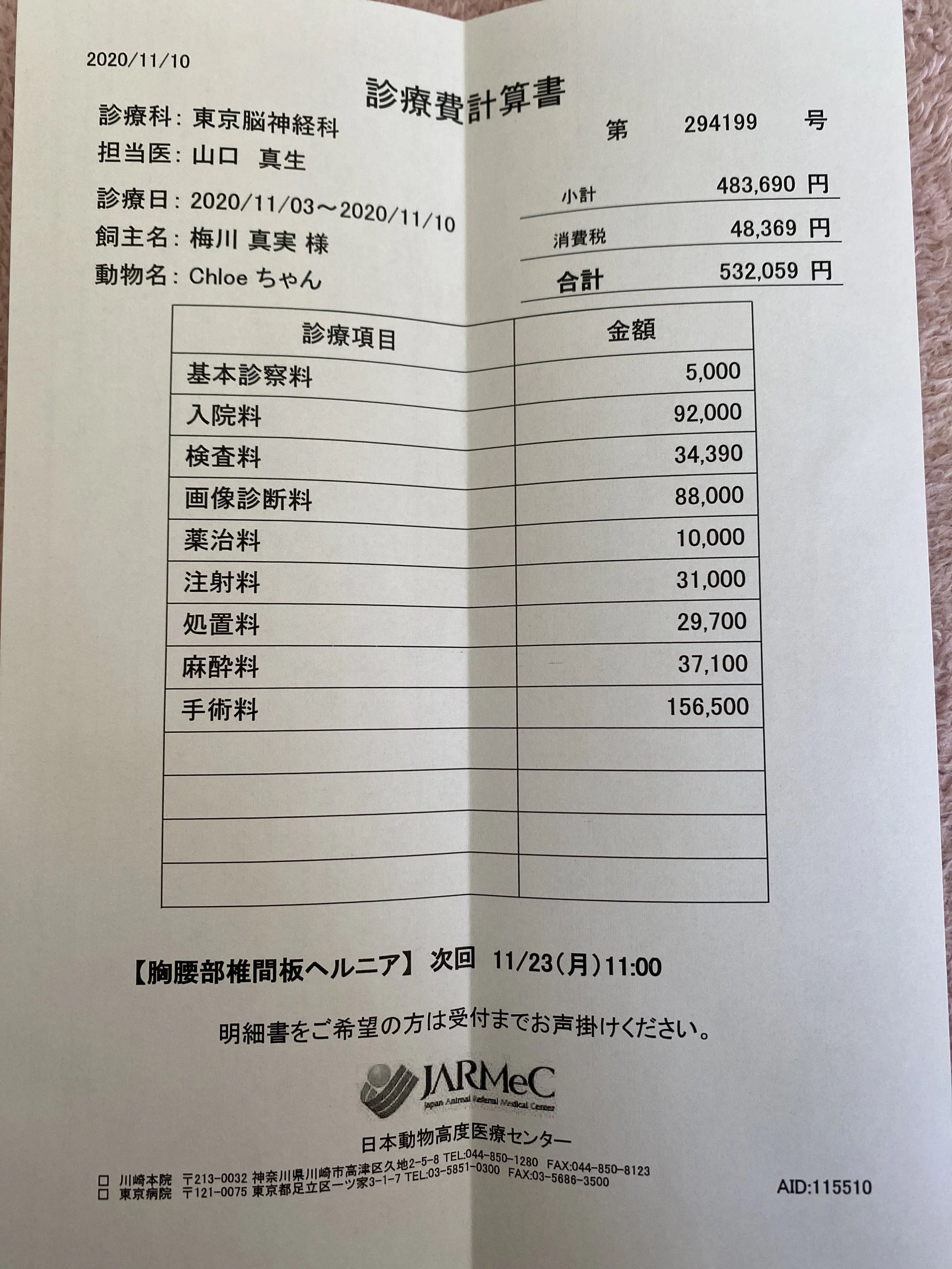 恥ずかしい話し私は今、Chloeにつきっきりの為、休職中で収入が少くない状況で生活もギリギリの状態です。その為手術費や入院費を支払うことが出来てもその後の通院費が危うい状態です。