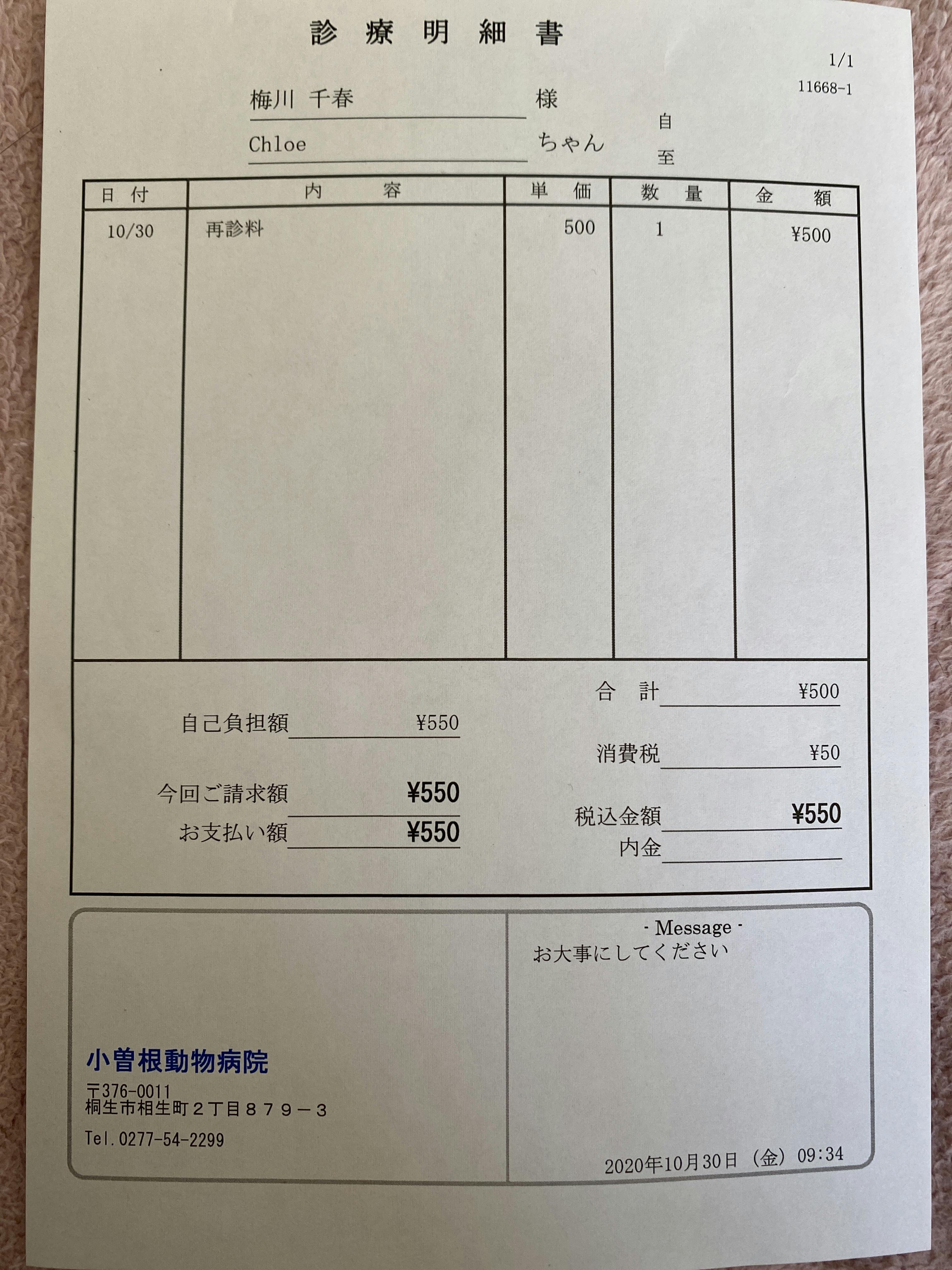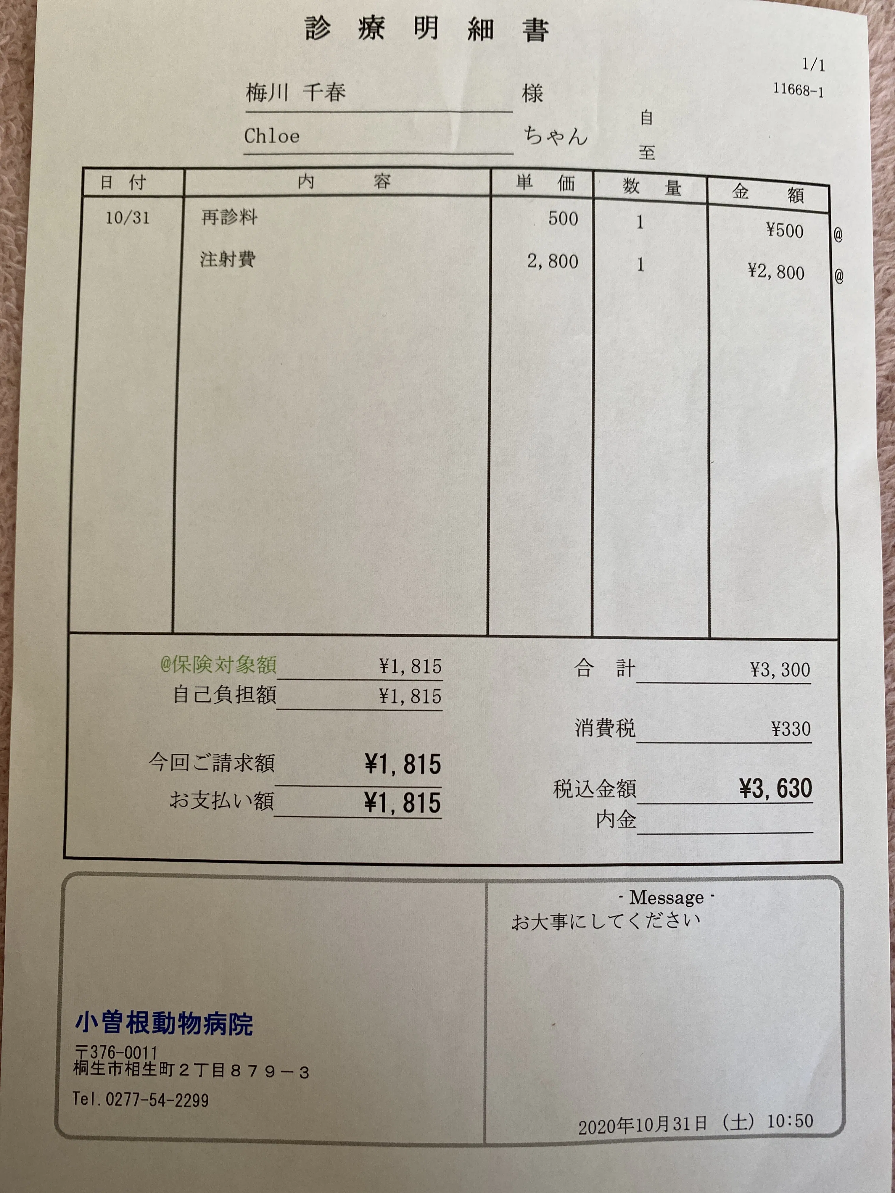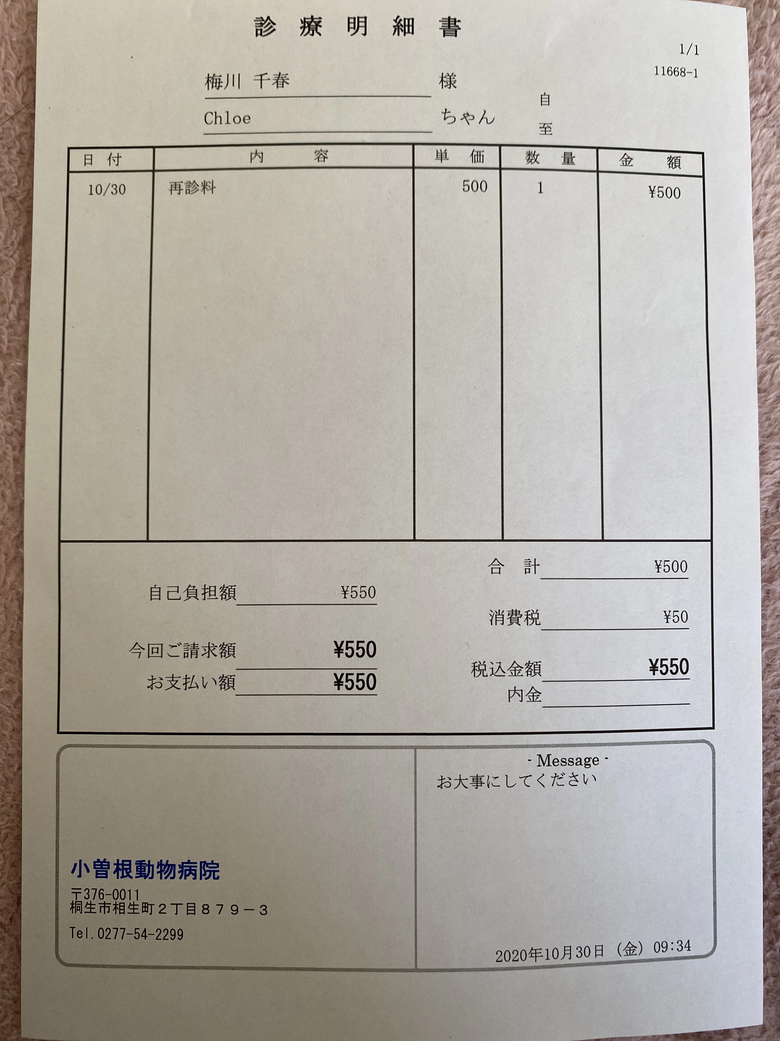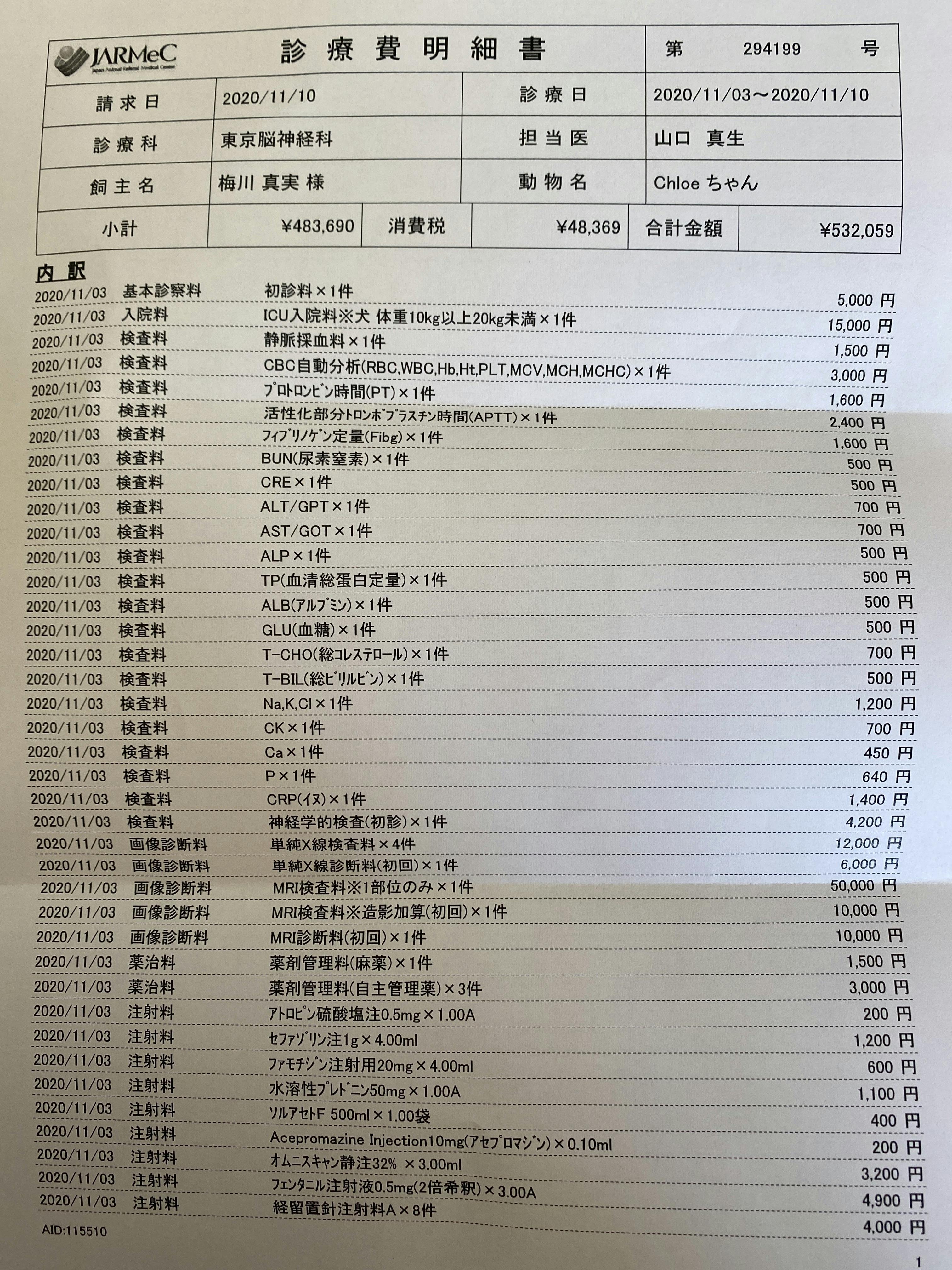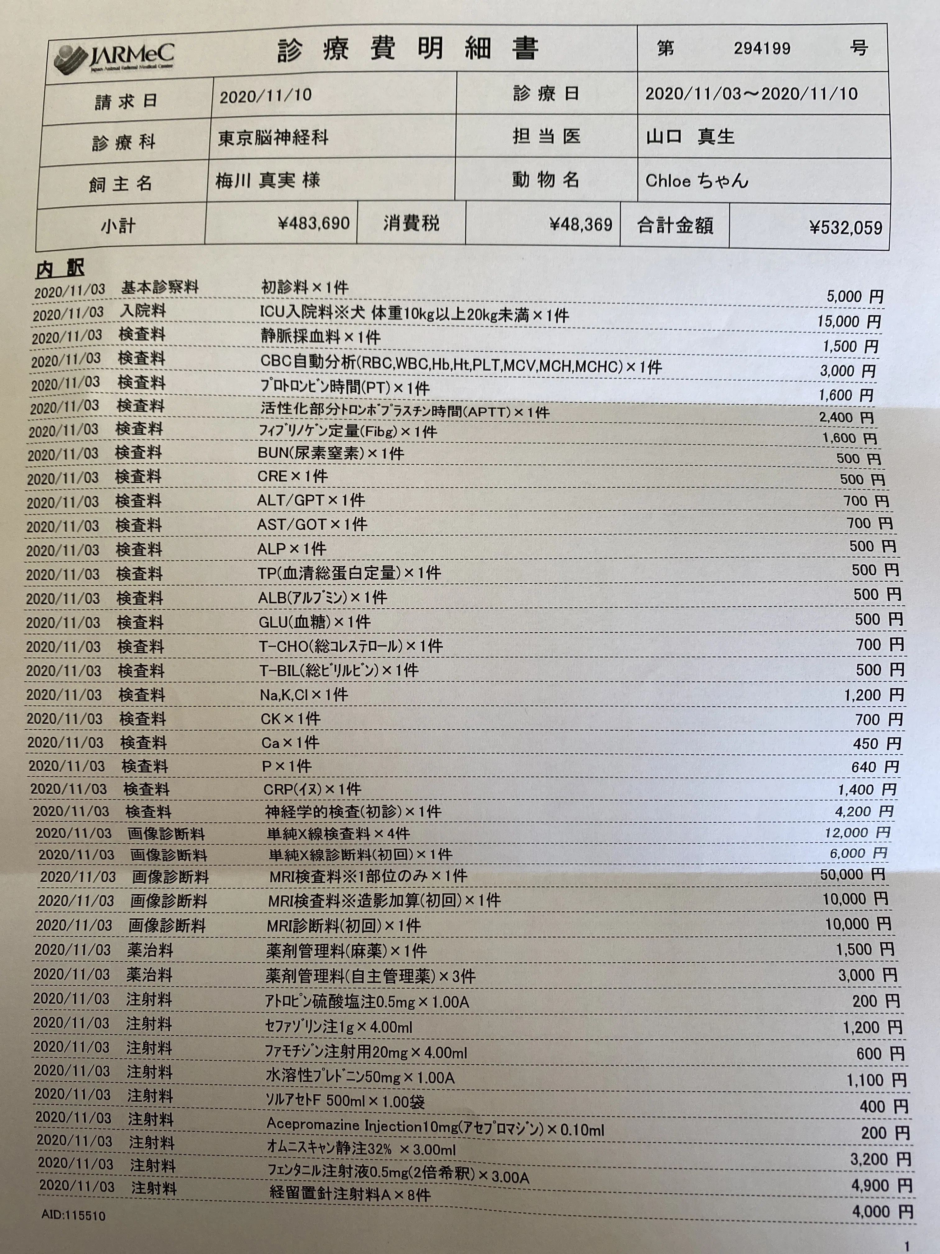 恥ずかしい話し私は今、Chloeにつきっきりの為、休職中で収入が少くない状況で生活もギリギリの状態です。その為手術費や入院費を支払うことが出来てもその後の通院費が危うい状態です。