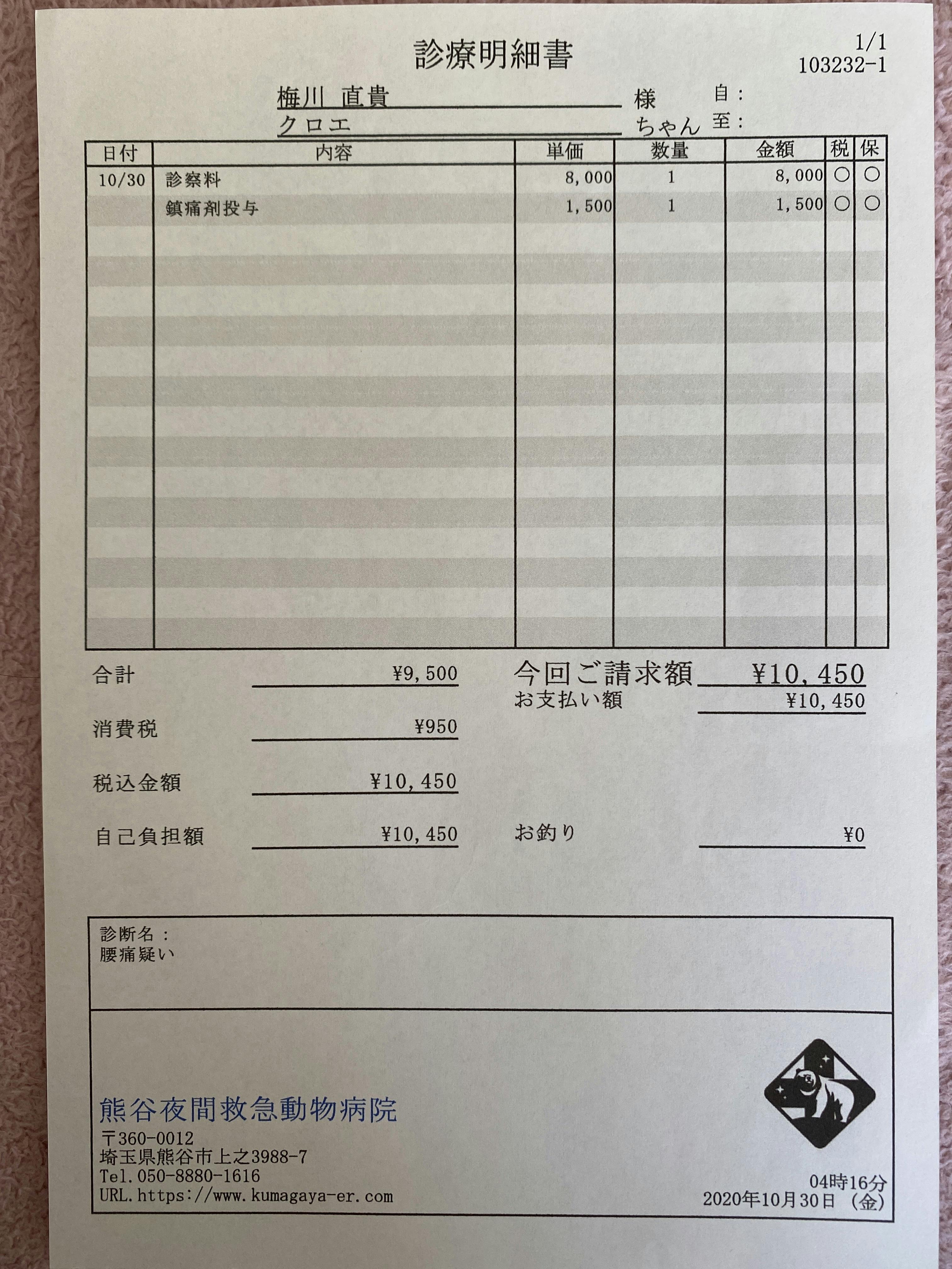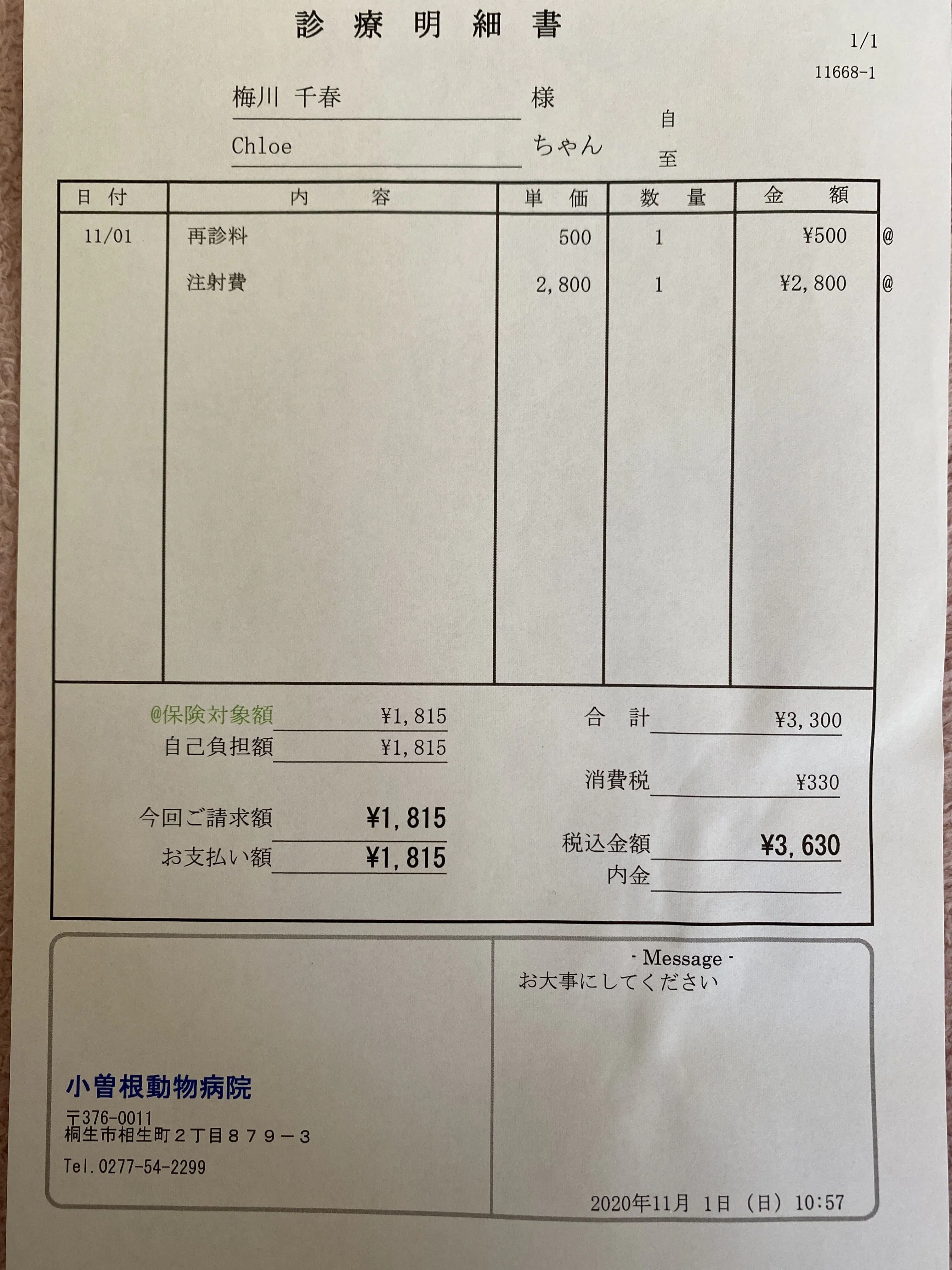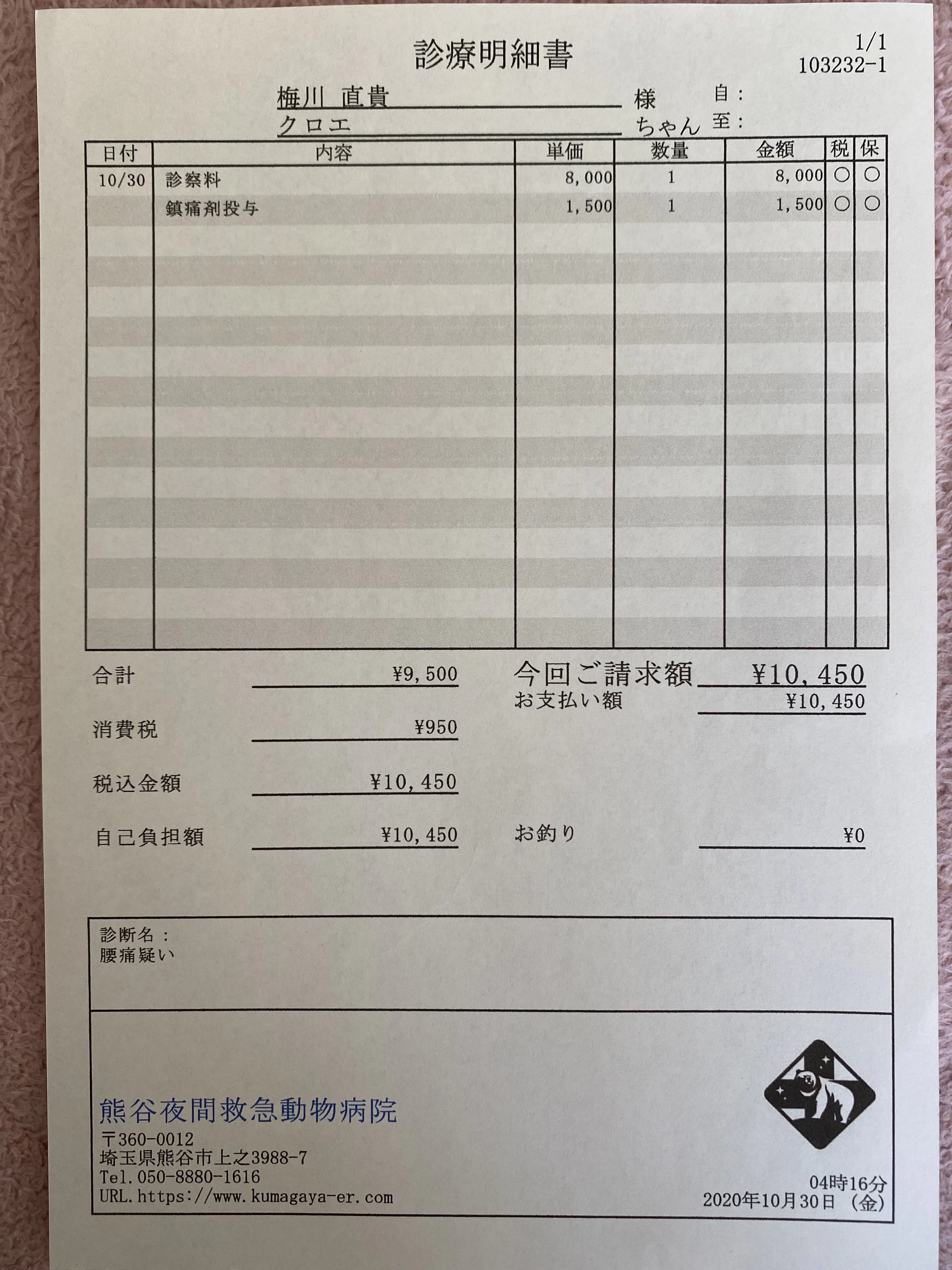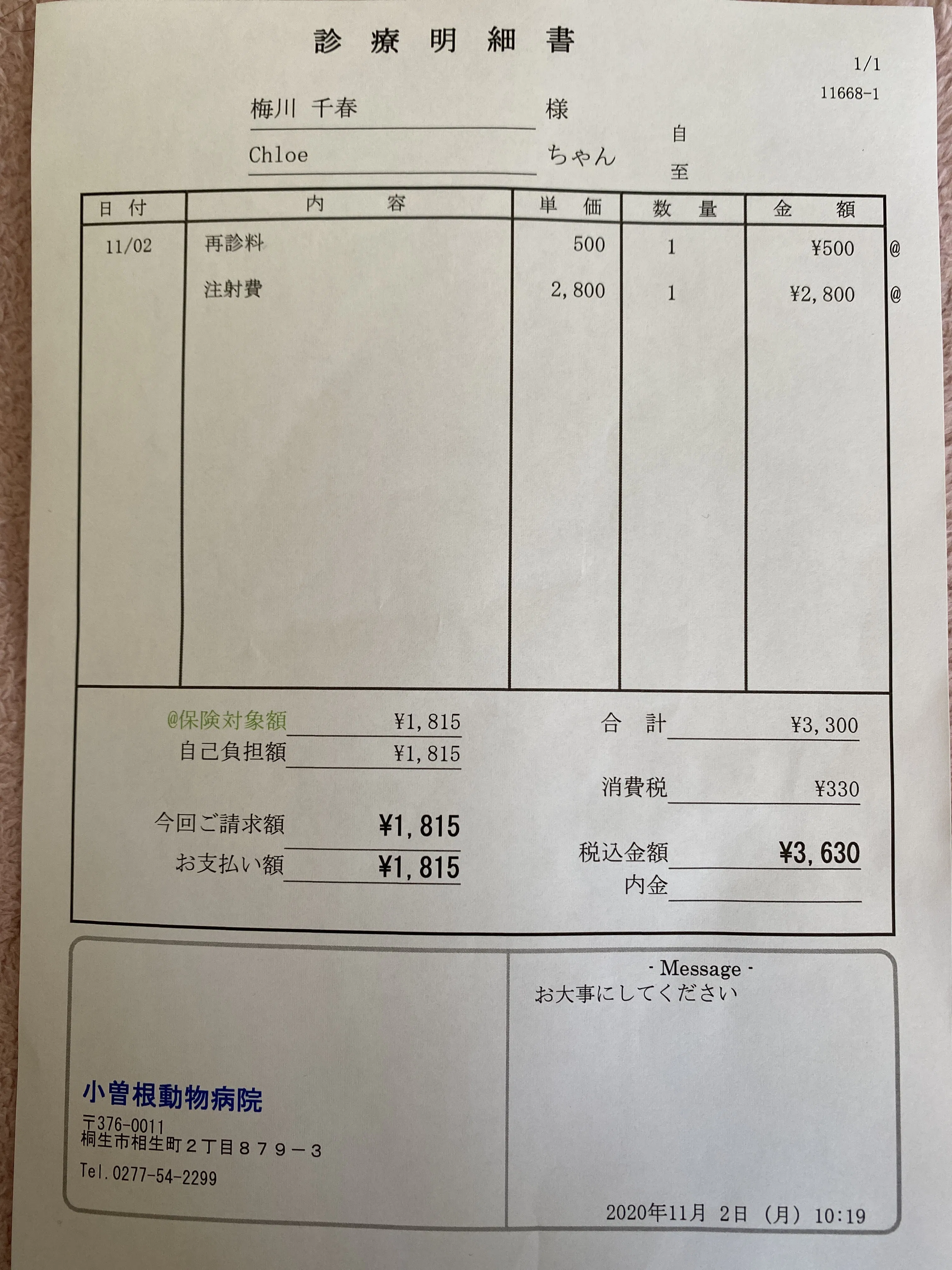 恥ずかしい話し私は今、Chloeにつきっきりの為、休職中で収入が少くない状況で生活もギリギリの状態です。その為手術費や入院費を支払うことが出来てもその後の通院費が危うい状態です。