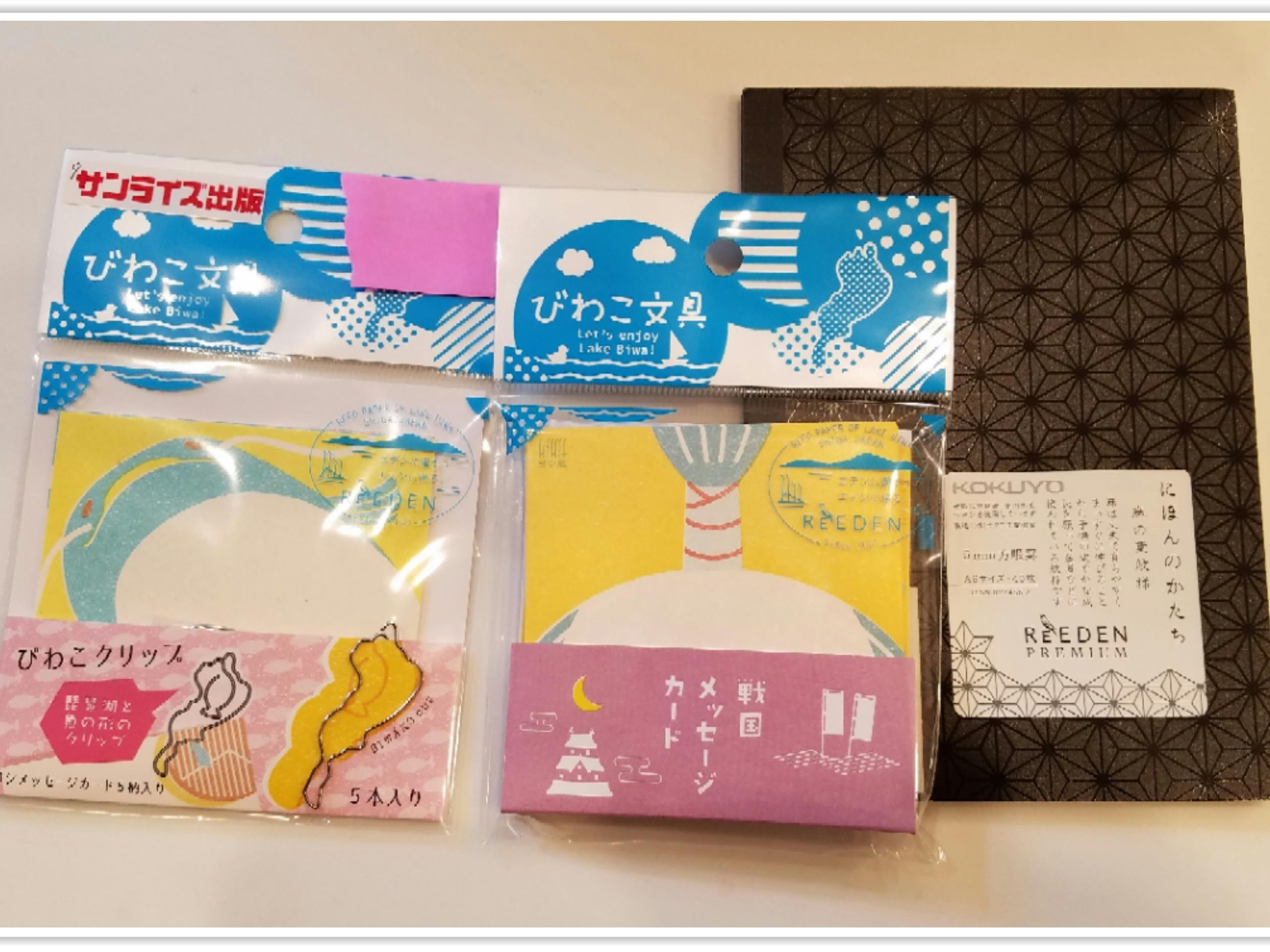 リエデン・プロジェクトとして、びわ湖の環境を守るという理念のもと、ヨシの活用に取り組み、広くびわ湖の環境保全意識を広める商品として開発された文具をご用意いたしました。また、「飛び出し注意」を呼びかける「とび太くん」とのコラボ文具もご用意いたしました。