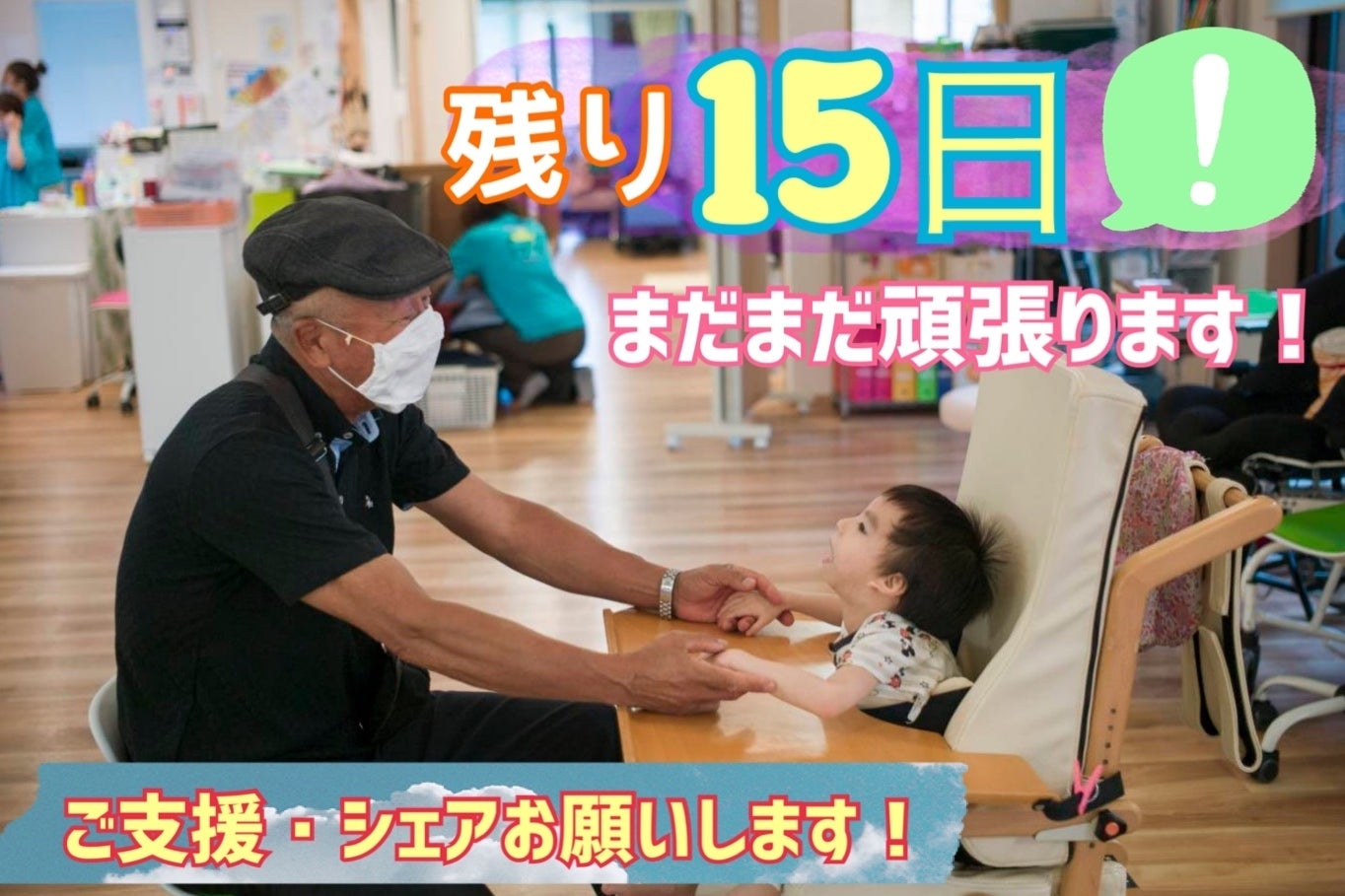 こんにちは。皆様にご支援いただき、プロジェクト支援者数239人、支援額2,109,500円、達成率70%を達成することができました!!ありがとうございます!支援いただいた皆様の応援コメントなど、とても励みになっています。引き続き、広報活動や写真集制作、またパネル展の準備やリターン品の準備など、一生懸命取り組んでいきます!写真は、スタッフの梅さんが椅子に座れず、ずっこけ、それを見ているかのような周ちゃんの表情を國森さんが激写した一枚です。奥にいるスタッフも心配そうに見つめていますが、フラダンスを得意とする梅さんは体幹が鍛えられているため、一大事には至りませんでした。写真集に載らない良い写真がたくさんあるので、またご紹介できたらと思います!今後も皆様のあたたかいご支援、ご協力を頂けると嬉しいです。たくさんの人に拡散してもらい、「ふぁみりぃ」の仲間たちの存在や笑顔、元気、成長を知ってもらえたらと思います。宜しくお願い致します。