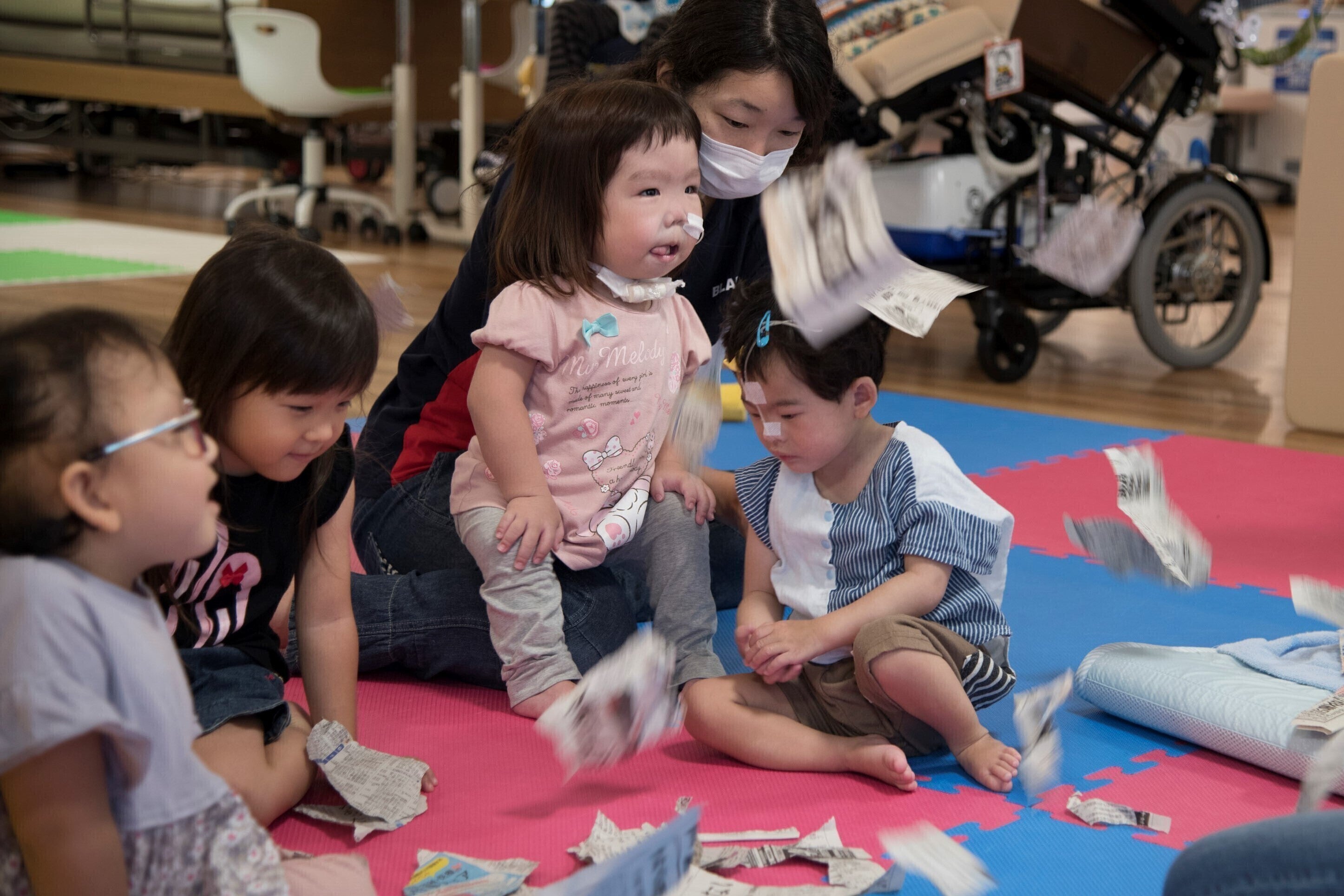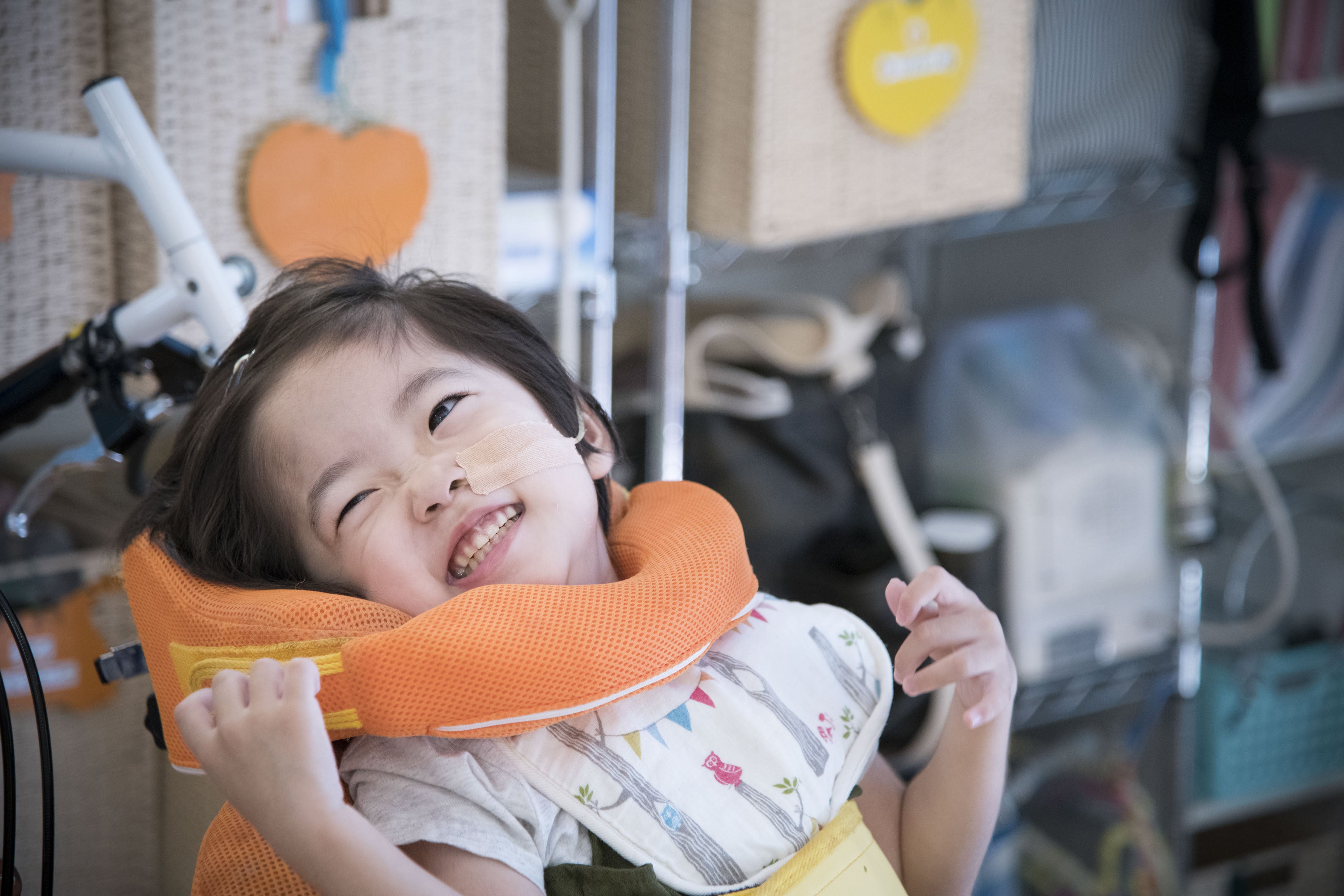 ◆「ふぁみりぃ」には人工呼吸器や経管栄養などの医療的ケアが必要な重症児者の仲間たちが通っています。人工呼吸器をつけていても、思うように動けなくても、言葉を話すのが難しくても、笑ったり怒ったり泣いたり、たくさんの気持ちを伝えてきてくれます。そして、元気いっぱいの仲間たちと日々関わるスタッフはその笑顔や、成長していく姿に力をもらっています。そんな一生懸命に生きるふぁみりぃの仲間たちの姿を写真を通して、子どもから大人、より多くの人に知っていただきたい、ふぁみりぃの仲間たちと関わることによって共に成長させてもらえるということを伝えたい。