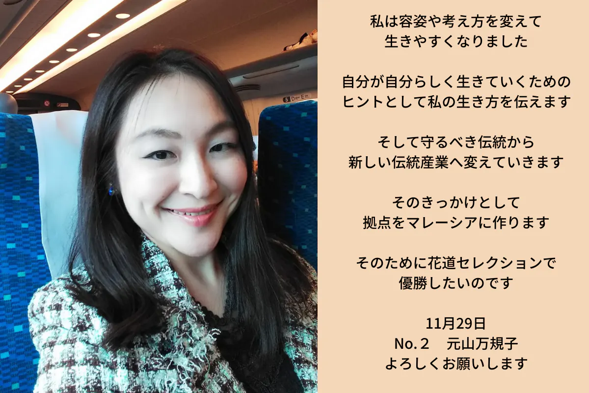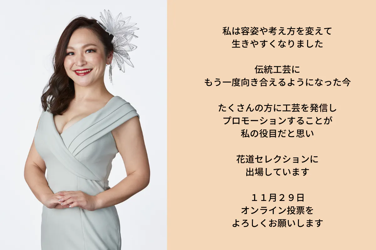 ※11月29日 本選の様子は花道セレクションにてオンラインで視聴、投票をしていただけます。私は・和服部門・30代部門に出場します。
