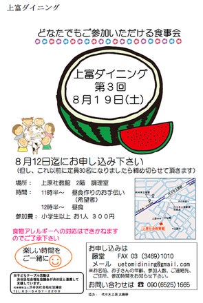 主催者の森下さんからのメッセージ 「7月14日、渋谷区の笹塚高架下施設で行われた「ささはたっこ」は、子どもと大人の70人の参加があり、メニューは子どもたちにも人気の‟ちらし寿司とお吸い物、ゼリー”でした。 人数が多かったため、スタッフは大忙しでしたが、子どもたちの笑顔とおいしそうに食べている様子を見ると、喜んでもらえて良かったと思いました。 8月11日(金・祝日)には、午前11時から午後3時まで、夏休み特別イベントとして、「ささはたっこまつり」を開催します。 今後もご支援、ご協力をお願いいたします。」 ※こどもテーブルの活動団体については、下記のホームページからでもご覧になれます http://shibuyaku-kodomo-table.jp/