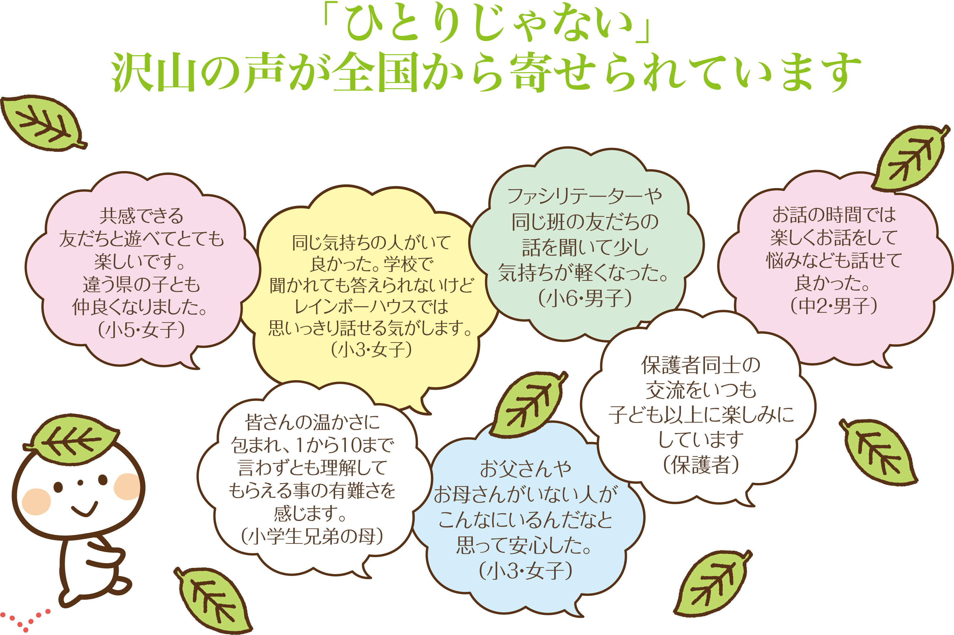 レインボーハウスのプログラムに参加した遺児の声、保護者の声をお届けします。