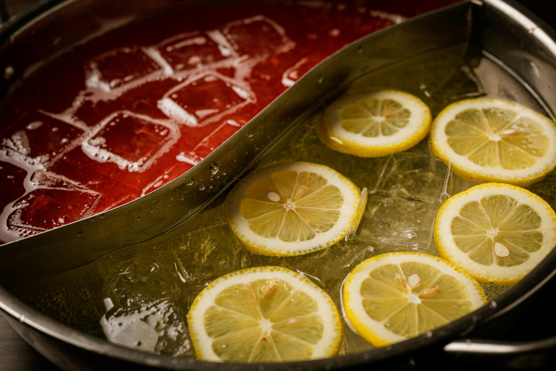 当店ではこの独特の鍋を器として使い、なかに二種類のお酒を入れて、お客様ご自身でサワーを作っていただける「火鍋サワー」をご用意しました。