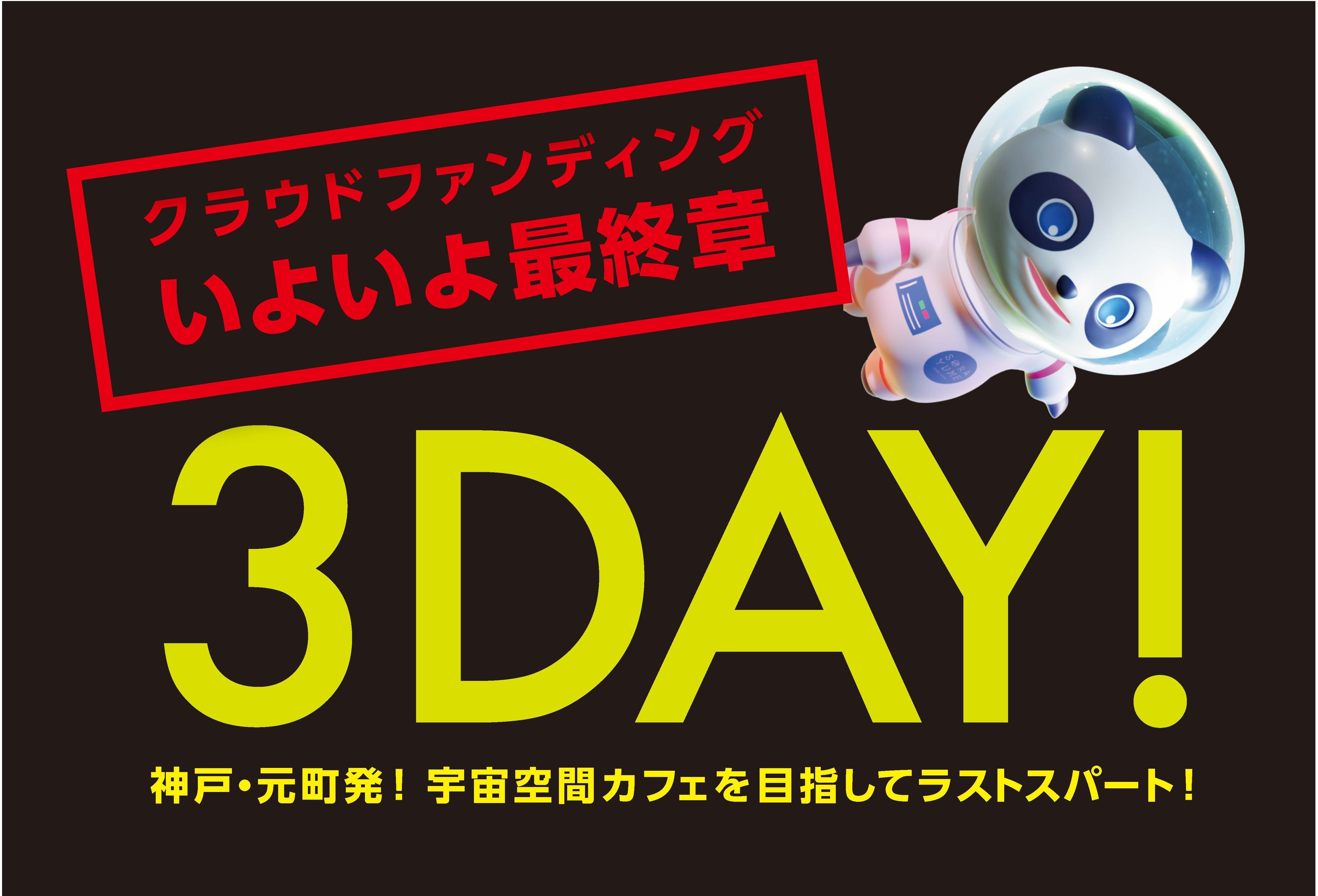 こんにちは、Team SORAYUMEです!私たちの活動を支えていただいた皆さま!ありがとうございます。険しい道のりでしたが、クラファンも間も無く終了です。\冬の神戸に、元気と感動を届けたい/私たちのこの想いは変わりません。これからスタートする「SORAYUME cafe」が地域の皆さまの期待に応える場所になるように、Team SORAYUMEは努力します。さぁ、宇宙空間へ!私たちとともに、幻想的な宇宙空間を楽しみましょう。【SORAYUME公式サイト】https://sorayume.cafe/■ 公式Twitterhttps://twitter.com/SORAYUME_KOBE■ 公式Instagramhttps://www.instagram.com/sorayume_kobe/?hl=ja■ 公式LINEhttps://line.me/R/ti/p/%40171vyvwm■ 公式Facebookhttps://www.facebook.com/sorayumekobe■ 公式YouTubehttps://www.youtube.com/channel/UCMIzD5CZW_UYtxmOVsAZw1g