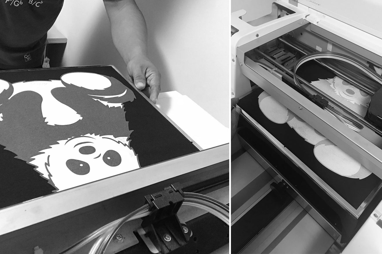 デザインの色味を忠実に再現するだけでなく、調達したシャツや季節によっても僅かに異なる生地の質感に合わせてインクを微調整。