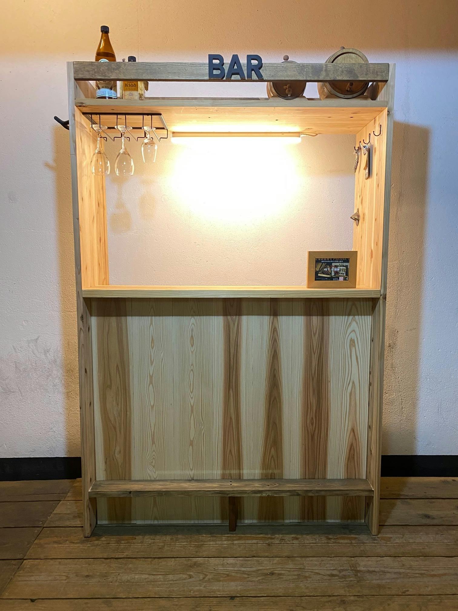 2020/12/25 18:06クラウドファンディングも残すところ後1週間をきりました!目標に少しでも近づければと願いながら、日々、家具製作に勤しんでおります!さて、本日は可動式のバーカウンターを製作しましたのでご紹介致します。テイクアウトの販売や、ご自宅で自分だけのBARを開店してみたり・・・と用途は色々です!!◆店主側の様子↓足下には備品などが置けるスペースがありますお客様側より低い作業台になっています◆お客様側の様子↓今回はBARの文字をつけました足掛けもついてます◆色々セットしてみました↓グラスラックや栓抜き、フックがついていますご覧頂きありがとうございました!目標達成に向けてラストスパートでがんばります!皆様のご支援、お待ちしております! もっと見る