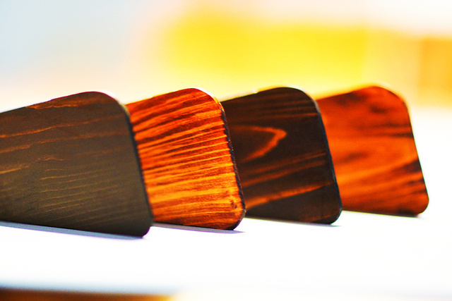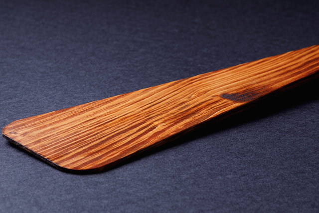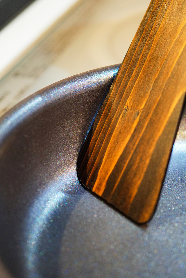 ヘラの表面には輪島塗に使われる漆を使った漆塗りがされています。現在も漆に勝る合成塗料は開発されていないと言われており、漆塗りを行うことで、木内部への水分や油分の侵入を防ぐことができ、耐久、耐水、断熱、防腐性が非常に高くなります。