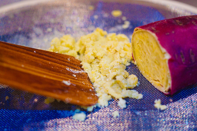 <芋を裏ごしする>