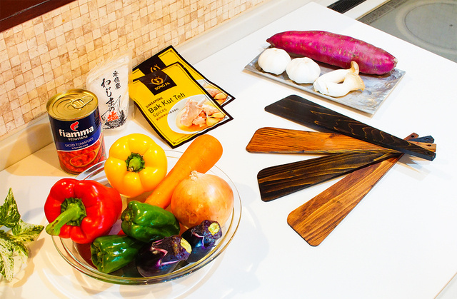 この料理ベラは天然素材の漆でコーティングがされていて、能登のヒバの木と、天然の漆でできているので、地球にも身体にも優しいオール天然素材のものだけで作られています。